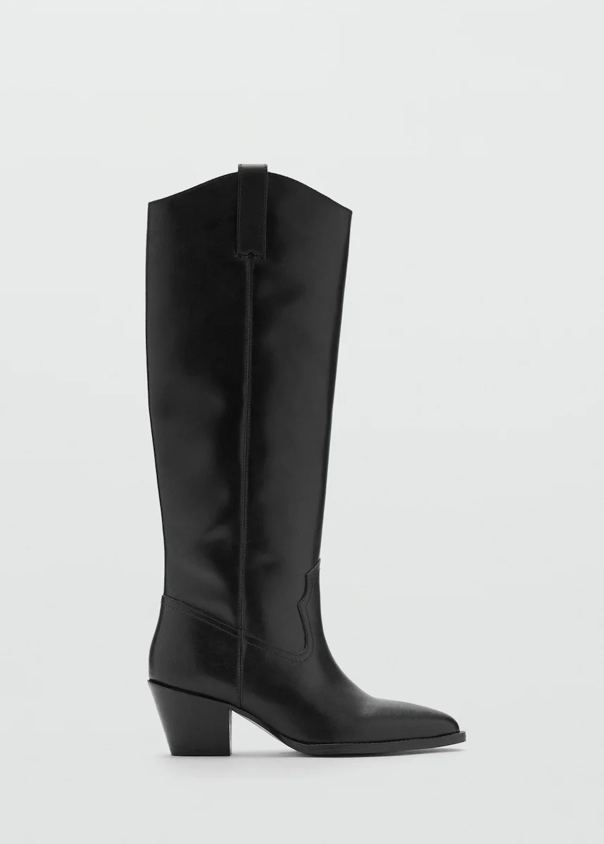 100% hovězí kůže. Vysoký svršek. Špičatá špička. Obdélníkový podpatek. Bez zapínání. Vnitřní podšívka. Podpatek 5 cm.