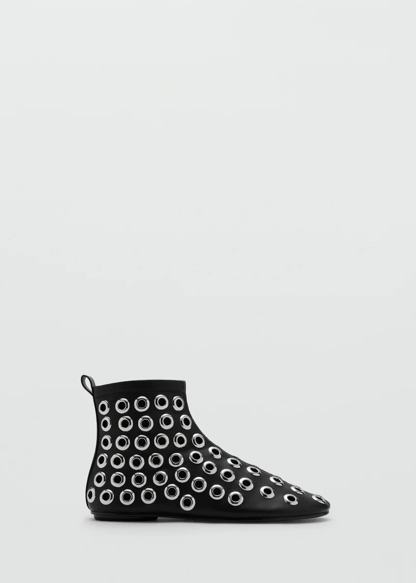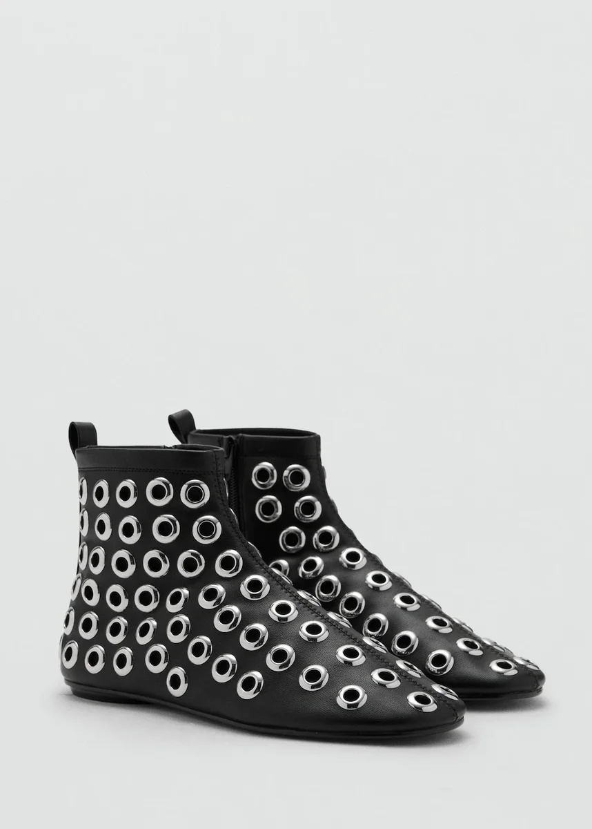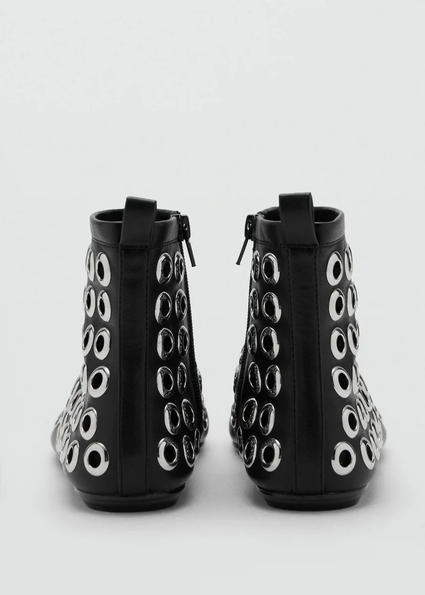 Kožený efekt. Design s očky. Krátká nohavice. Kulatá špička. Boční zapínání na zip. Vnitřní podšívka. Exkluzivně online.