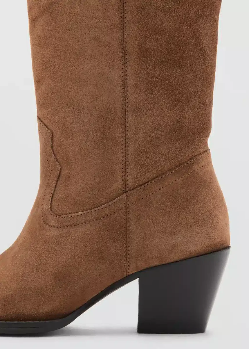 100% hovězí kůže. Semiš. Vysoká špička. Špičatá. Obdélníkový podpatek. Bez zapínání. Vnitřní podšívka. Podpatek 1,97 palce