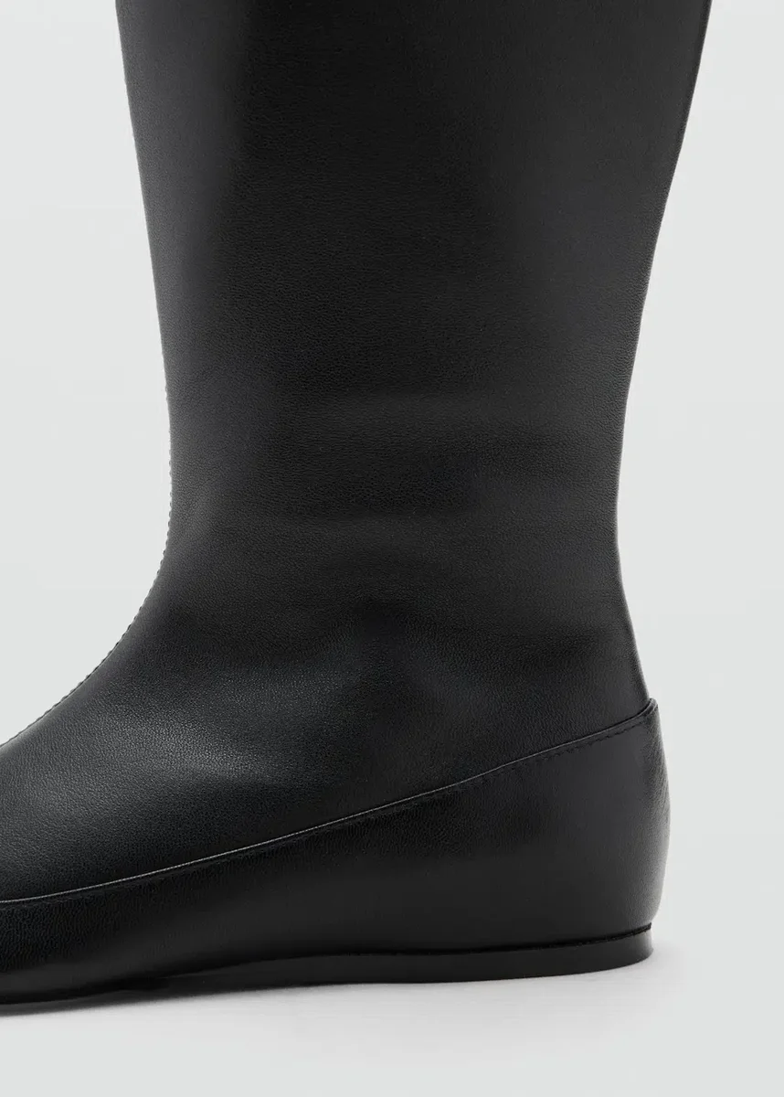 Kozí kůže. Kombinovaný design. Vysoký svršek. Plochá podrážka. Kulatá špička. Boční zip. Exkluzivně online