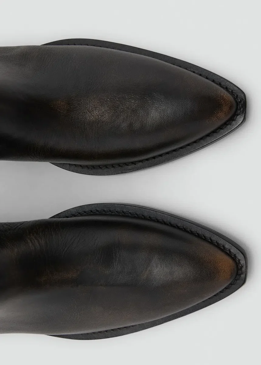 100% hovězí kůže. Kartáčovaný povrch. Vysoká špička. Špičatá. Blokový podpatek. Bez zapínání. Výška podpatku: 4 cm. Exkluzivně online.