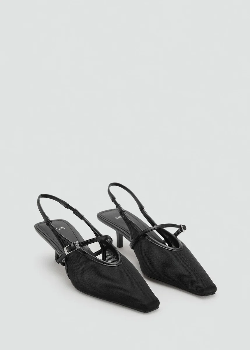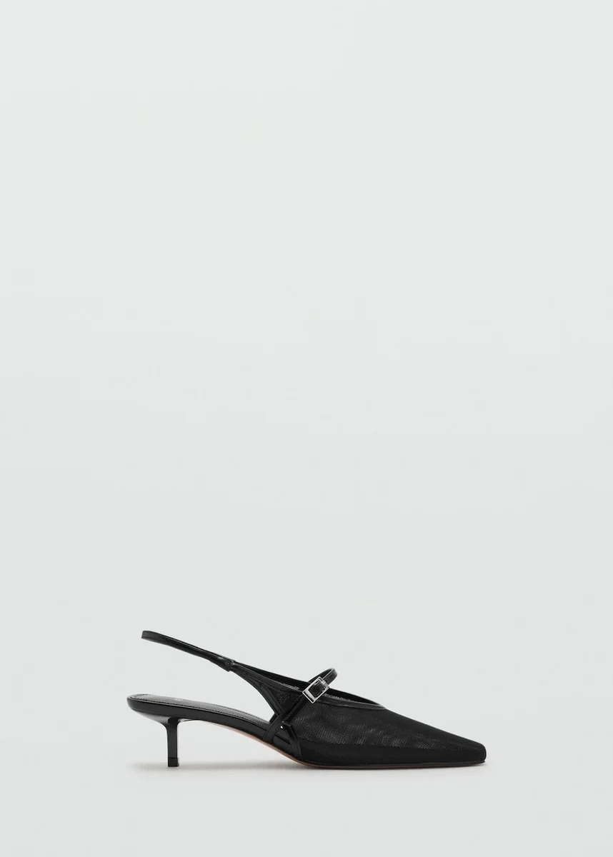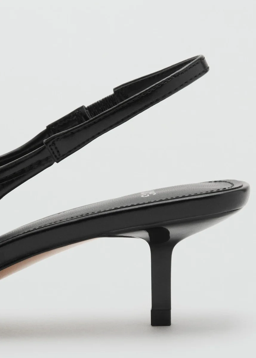 Design se zapínáním na patě. Špičaté. Nastavitelná spona. Nízký podpatek. Podpatek 4,5 cm. Vnitřní podšívka. Akční produkt.