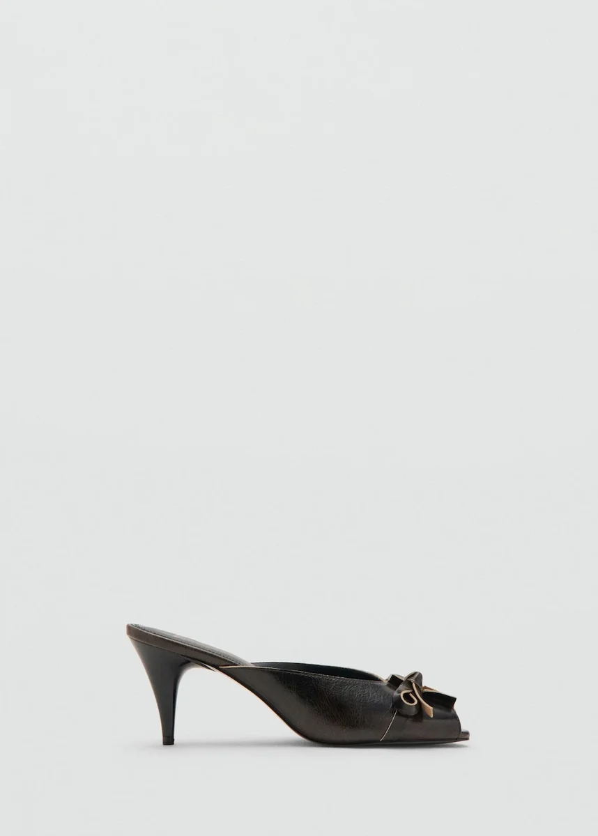 100 % hovězí kůže. Design se zapínáním na patě. Otevřená špička. Ozdobná mašle. Kuželovitý podpatek. Bez zapínání. Podpatek 8,5 cm. Exkluzivně online