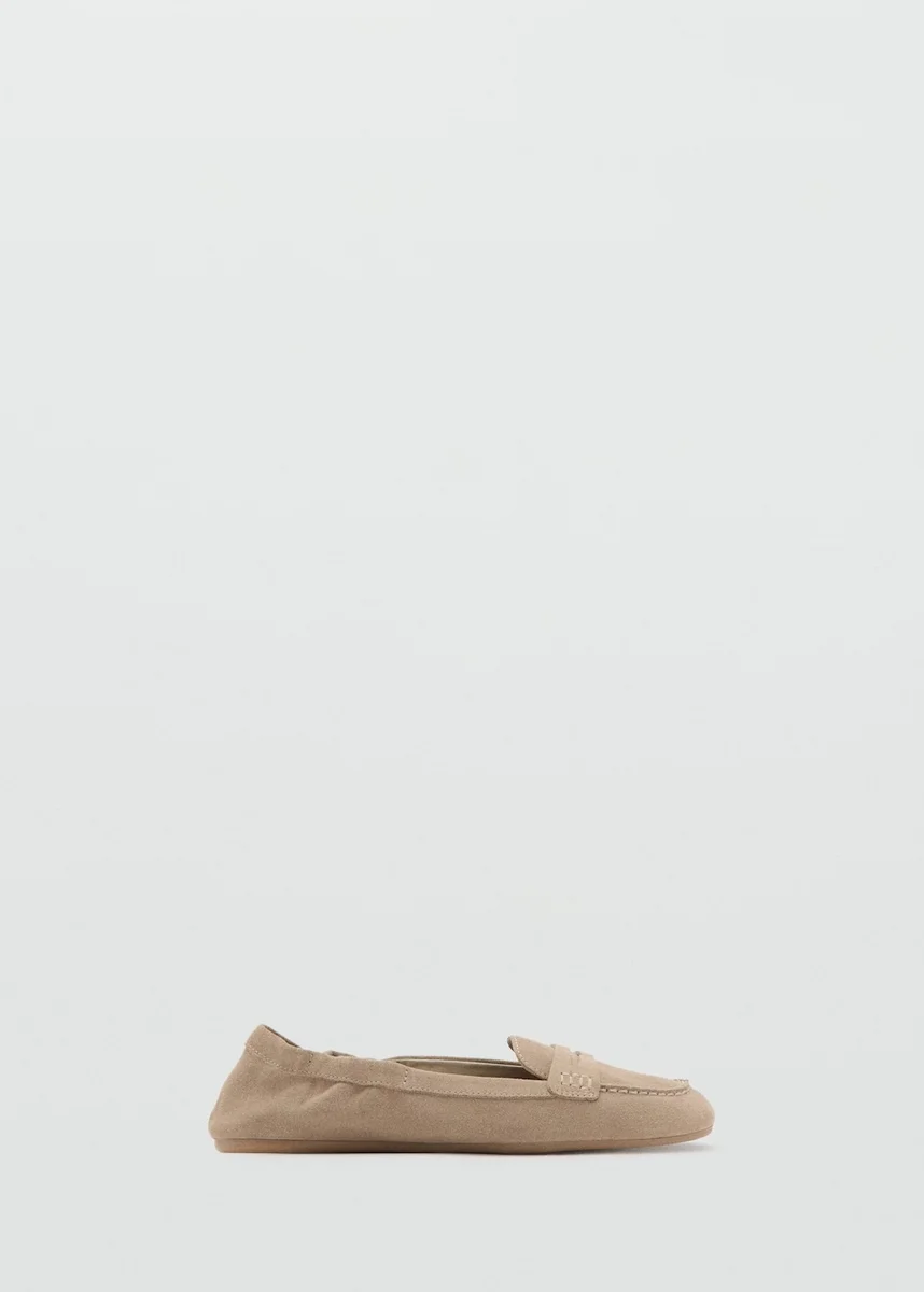 100 % hovězí kůže. Semiš. Ploché. Kulatá špička. Páskový detail. Elastické řasení. Bez zapínání