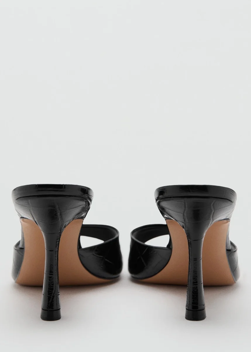Krokodýlí efekt. Design se zadní páskou. Špičaté. Jehlový podpatek. Bez zapínání. Podpatek 8 cm.