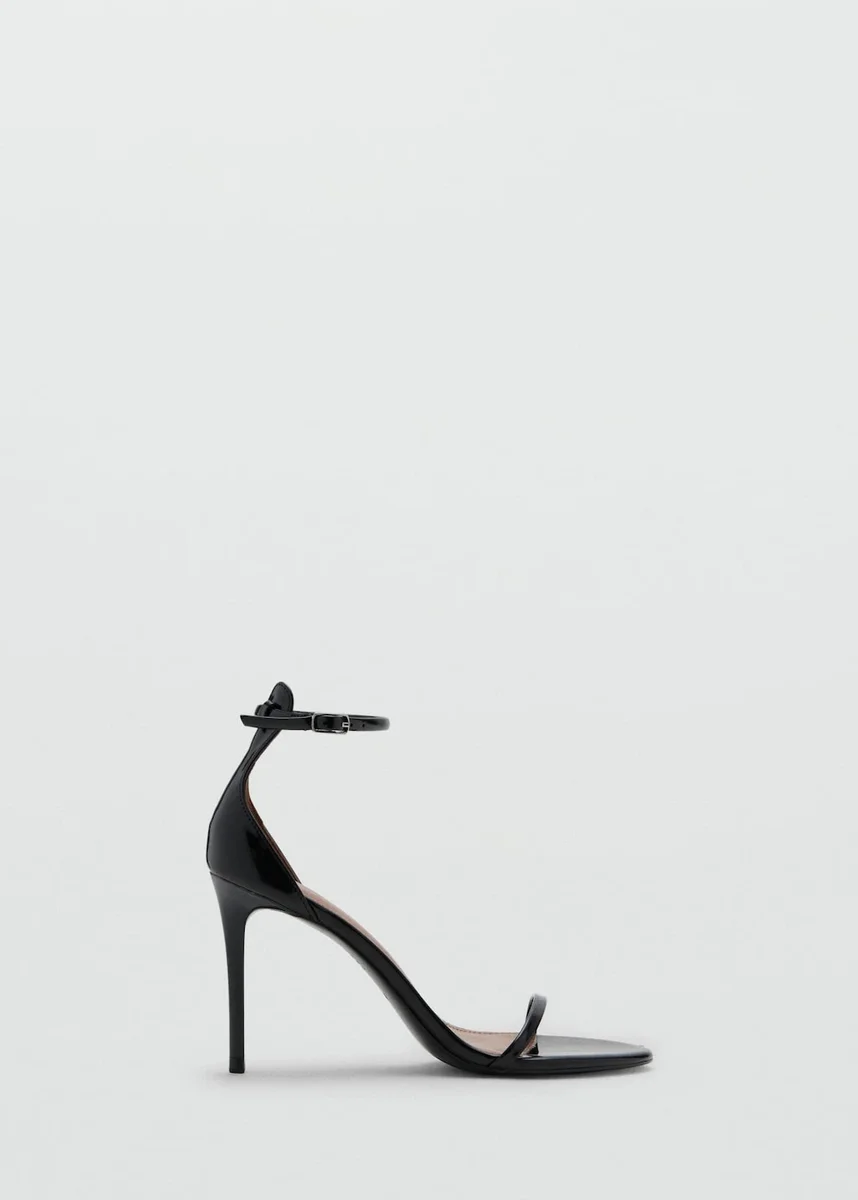 Lakovaný efekt. Design s pásky. Otevřená špička. Jehlový podpatek. Zapínání na kotníku s kovovou sponou. Podpatek 3,74 palce.