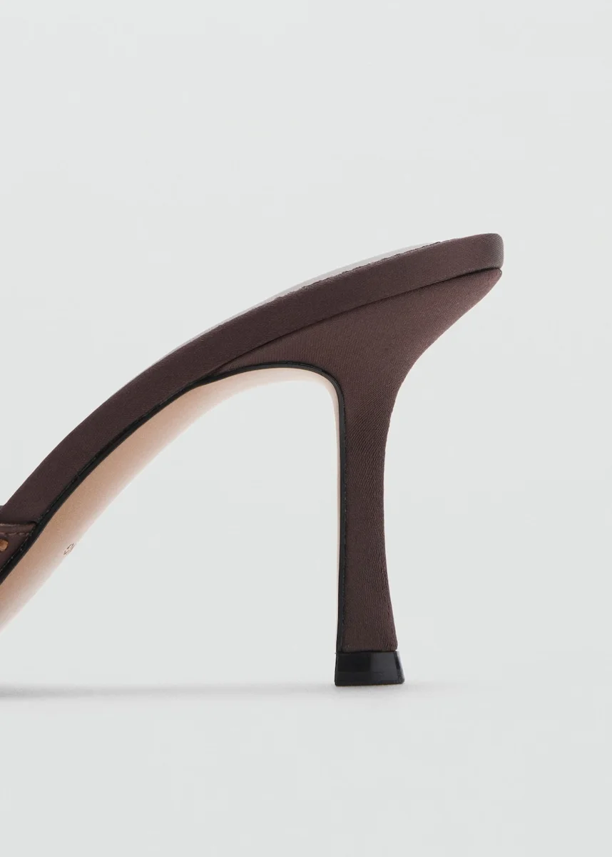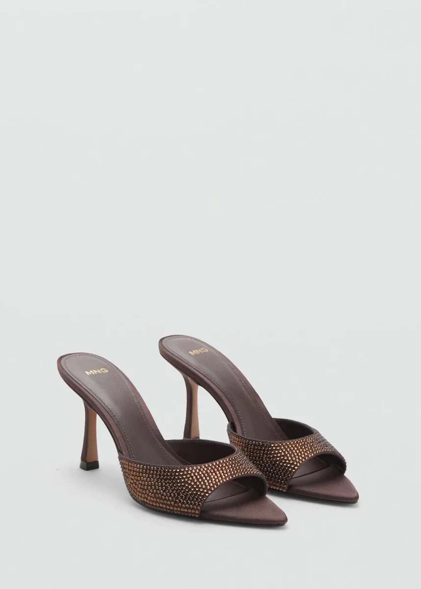 Design se zadní páskou. Ozdoba z umělých diamantů. Otevřená špička. Jehlový podpatek. Bez zapínání. Podpatek 3,15 palce