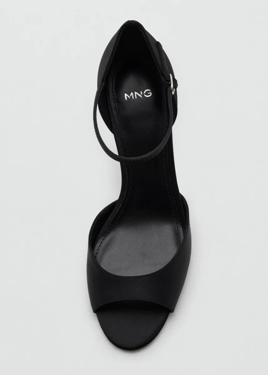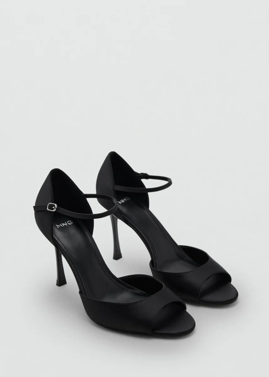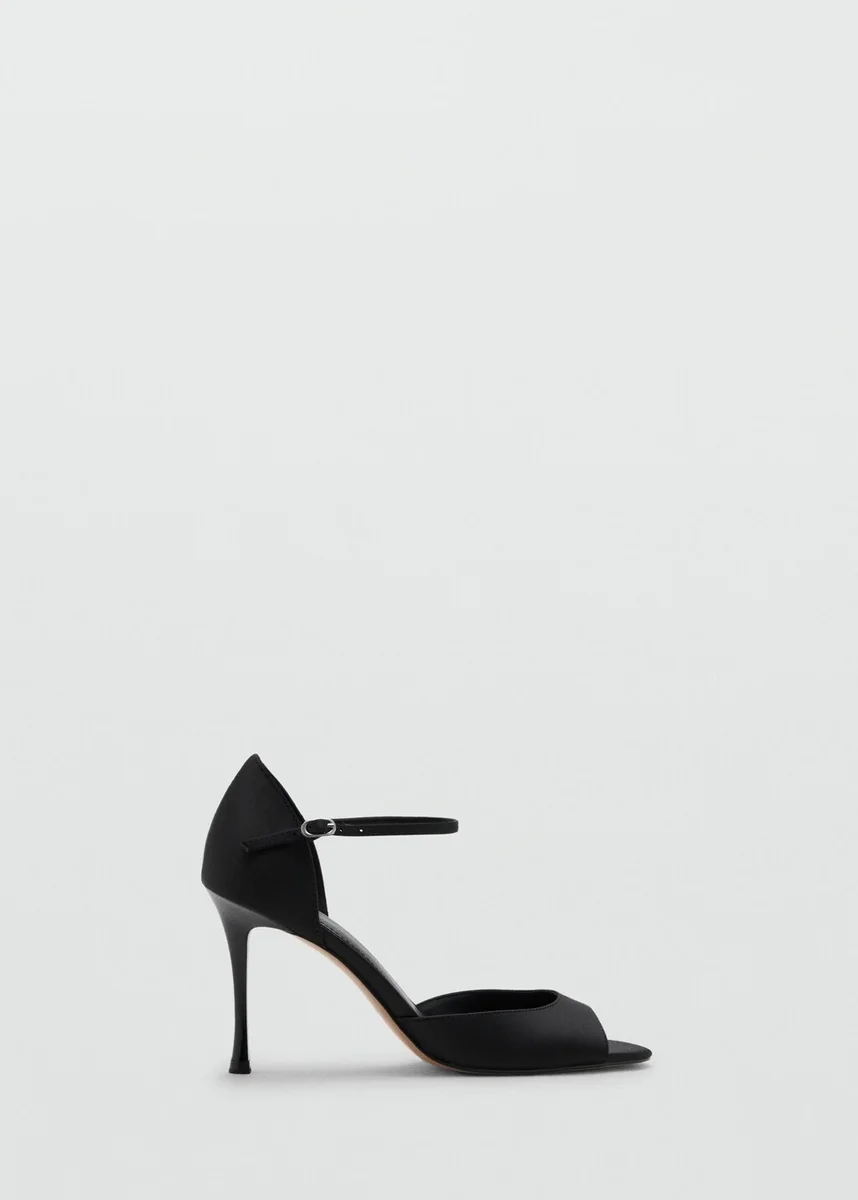 Saténová vazba. Design s páskem. Otevřená špička. Jehlový podpatek. Zapínání na kotníku s kovovou sponou. Podpatek 3,54 palce