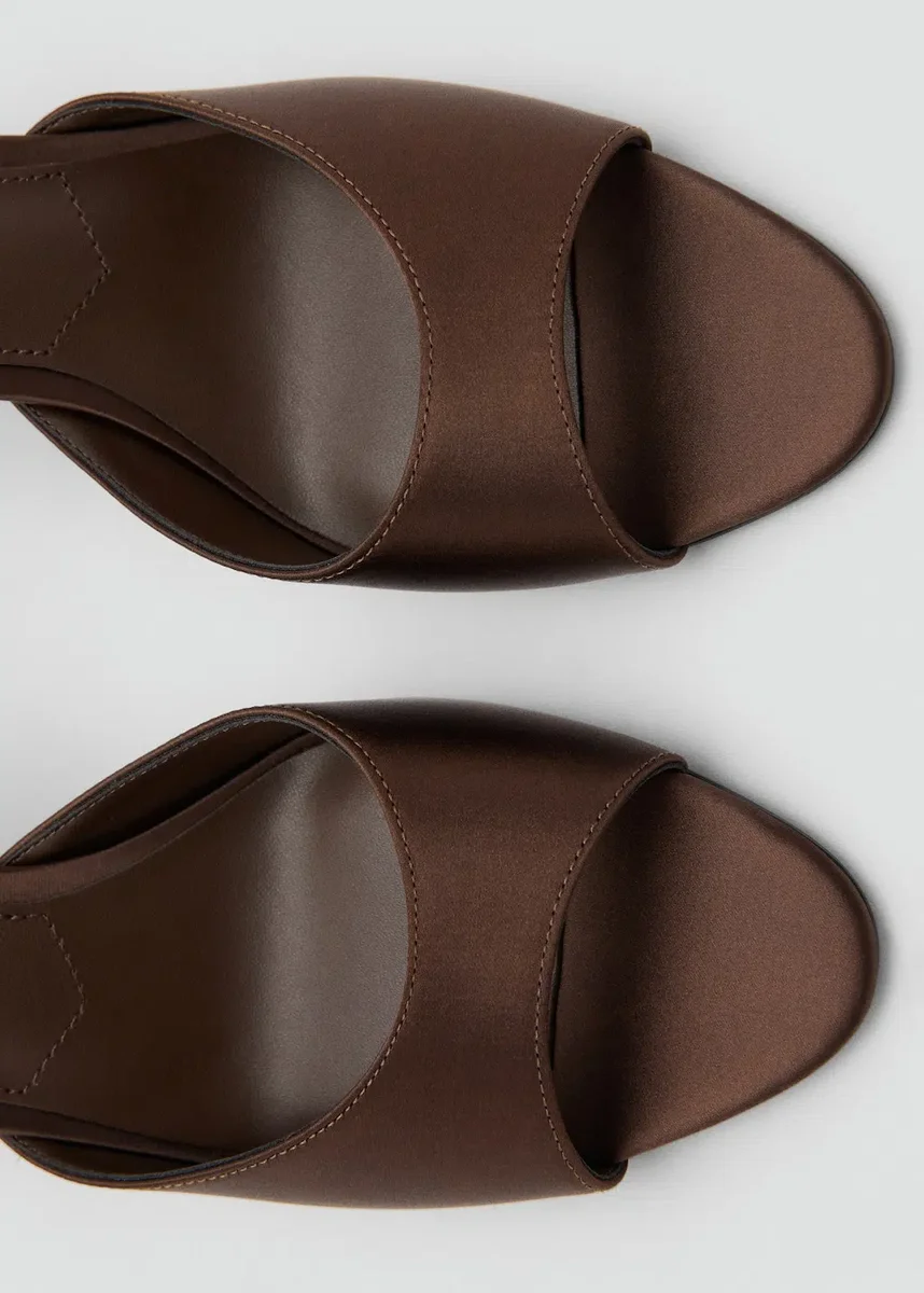 Saténová vazba. Design se zapínáním na patě. Design s páskem. Otevřená špička. Jehlový podpatek. Bez zapínání. Podpatek 4,13 palce