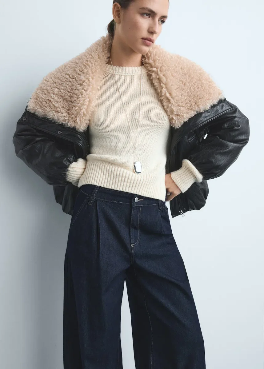 50 % REGENERATIVNÍ BAVLNA MATERRA. Bavlněná džínovina. Dlouhý střih. Široké nohavice. Střední výška pasu. Poutka na opasek. Přední záhyb. Džíny se zavazováním. Zapínání na knoflík a zip. Délka vnitřního švu 81 cm