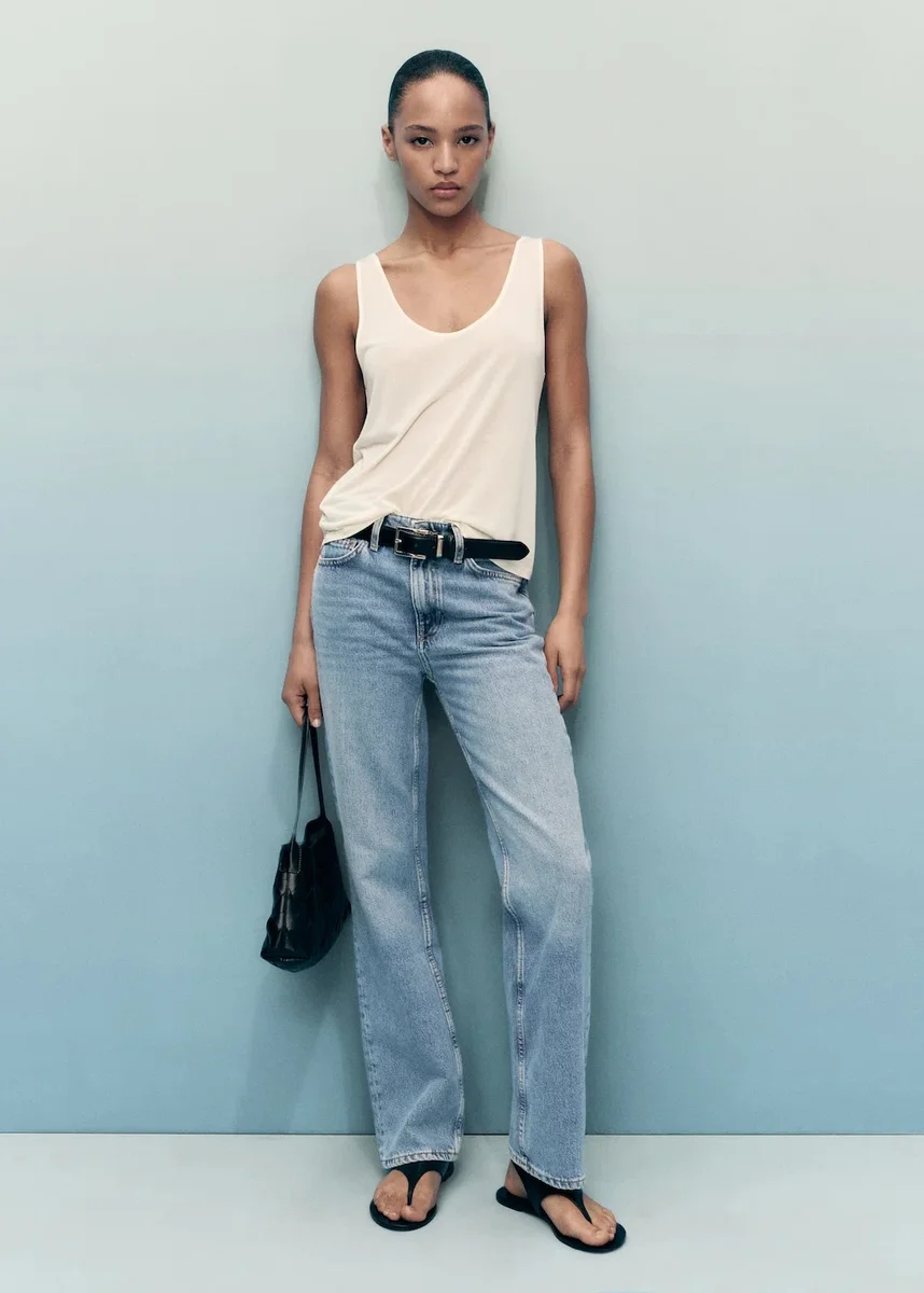 Bavlněná džínovina. Dlouhý střih. Rovný střih. Střední výška pasu. Poutka na opasek. Pět kapes. Zapínání na zip a knoflík. Vnitřní délka nohavic 77,5 cm. Standardní střih. Vysoký pas.