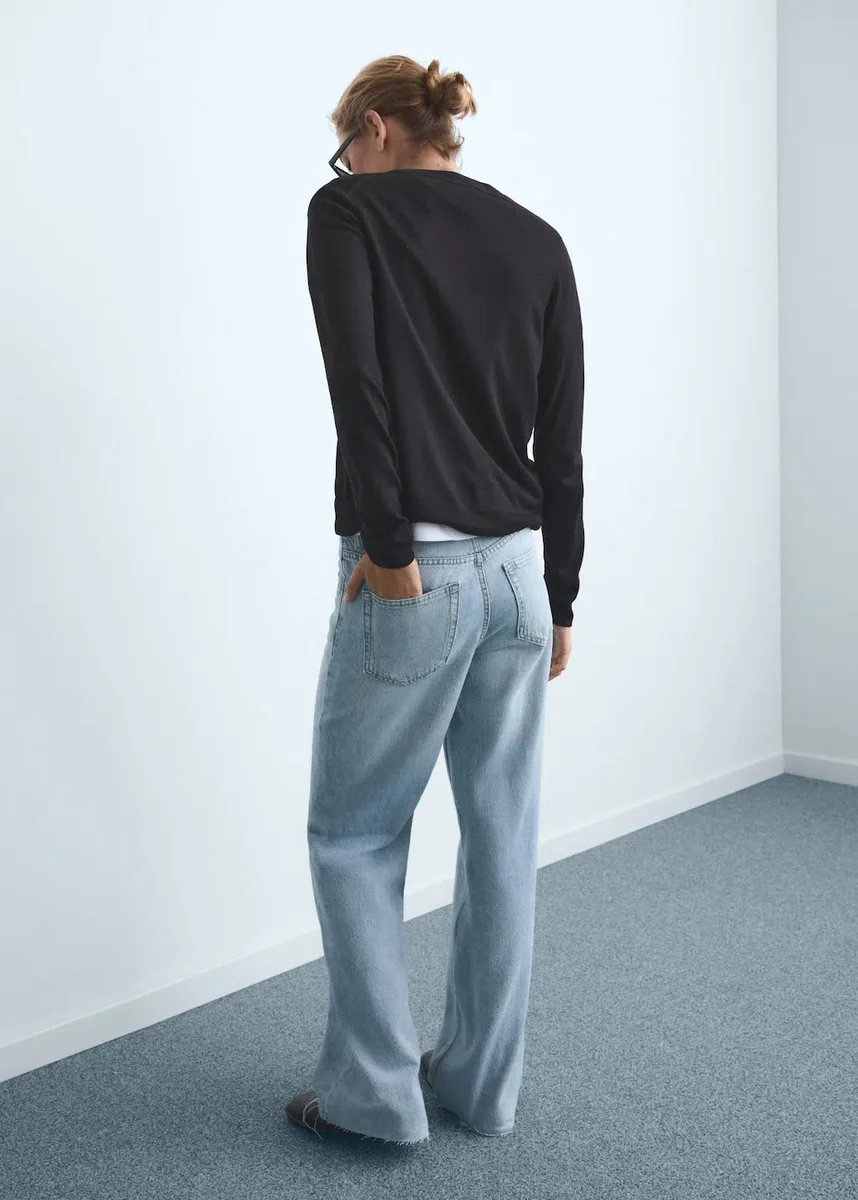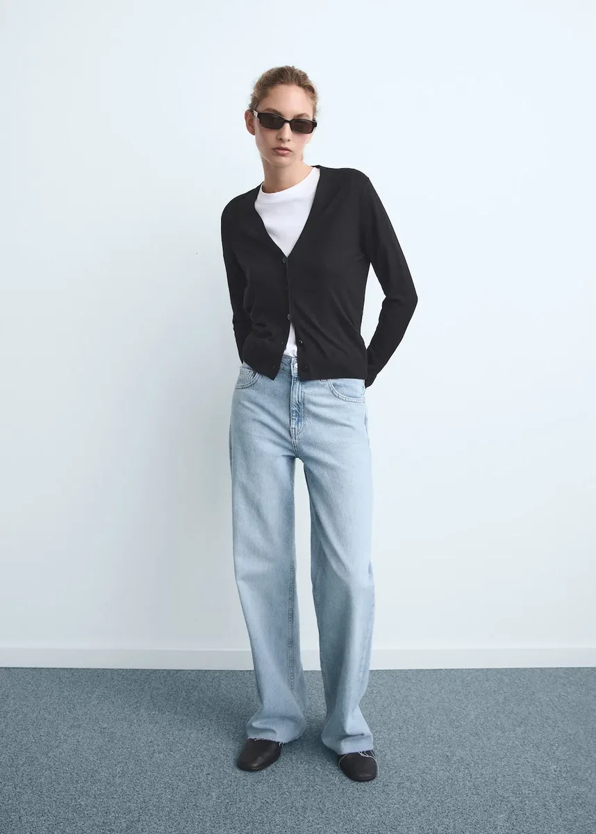 Bavlněná džínovina. Dlouhý střih. Široké nohavice. Vysoký pas. Poutka na pásek. Pět kapes. Roztřepený lem. Zapínání na zip a knoflík. Vnitřní délka 84,5 cm. K dispozici v nadměrných velikostech. Široké nohavice. Zapínání na zip a knoflík vpředu.