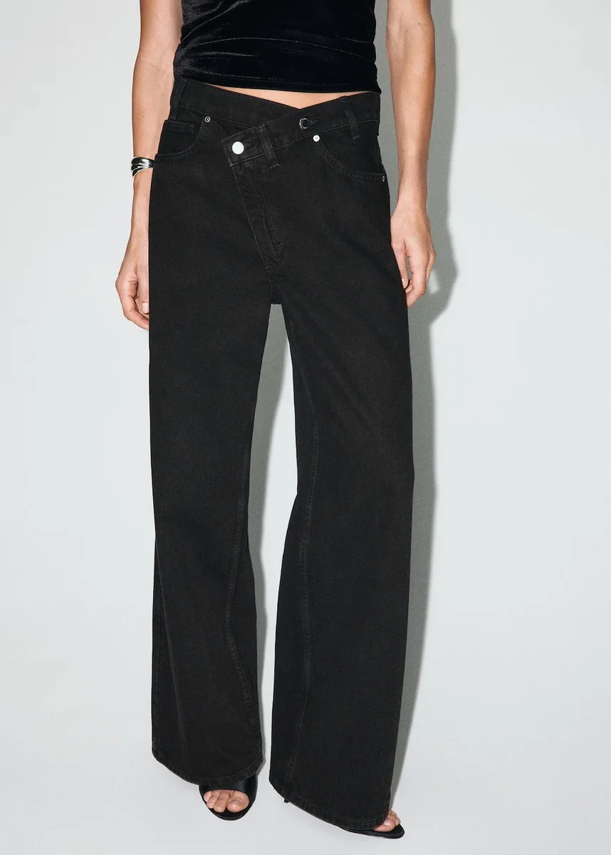 Džíny se širokými nohavicemi, středním pasem a překříženým pasem