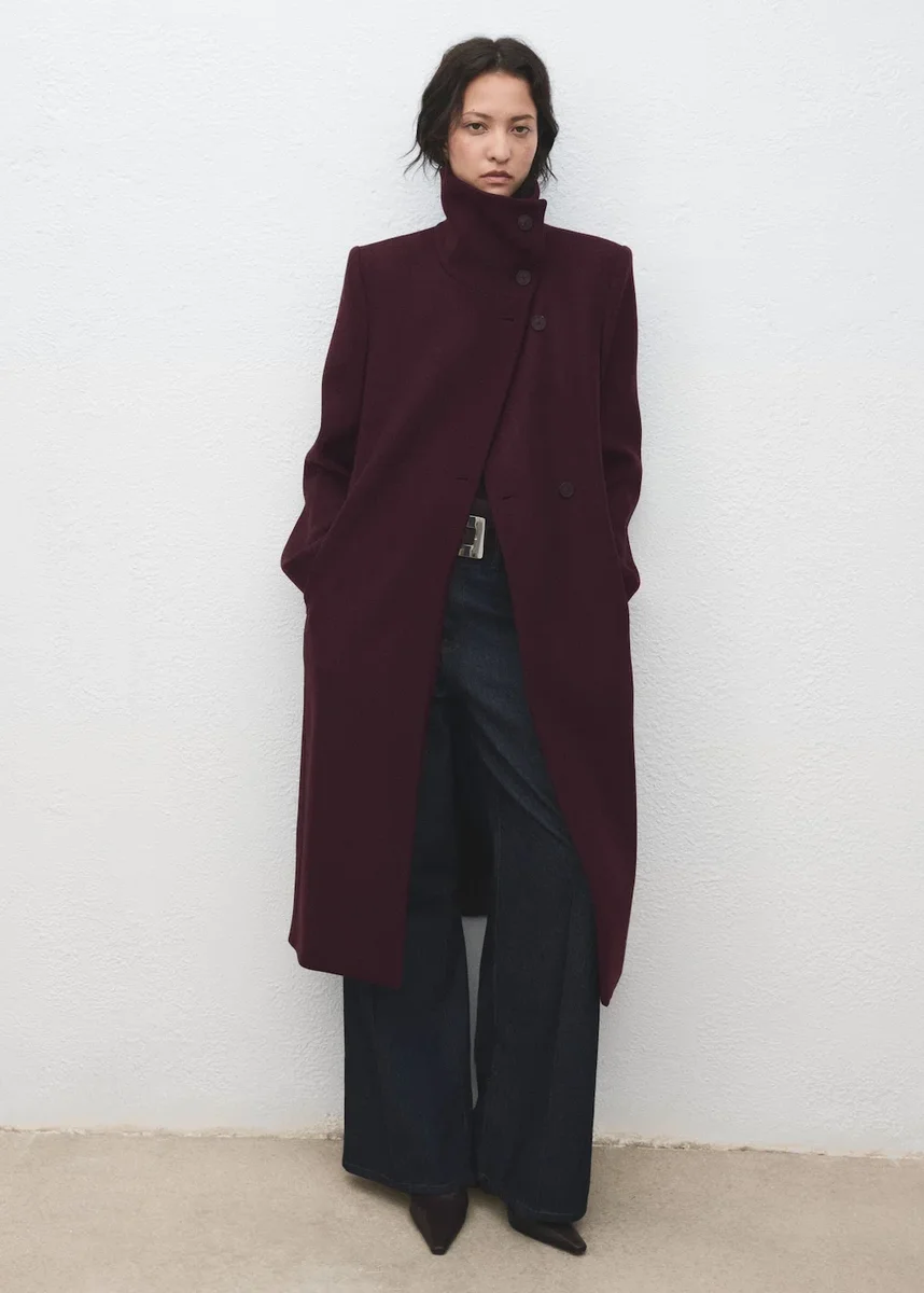 Tento dlouhý, rovný model z panenské vlny od Manteco má límec s knoflíkovým zapínáním. Má dlouhé rukávy, poutka na opasek a opasek ve stylu županu. Zapínání na knoflíky vpředu a vnitřní podšívka. K dispozici v nadměrných velikostech