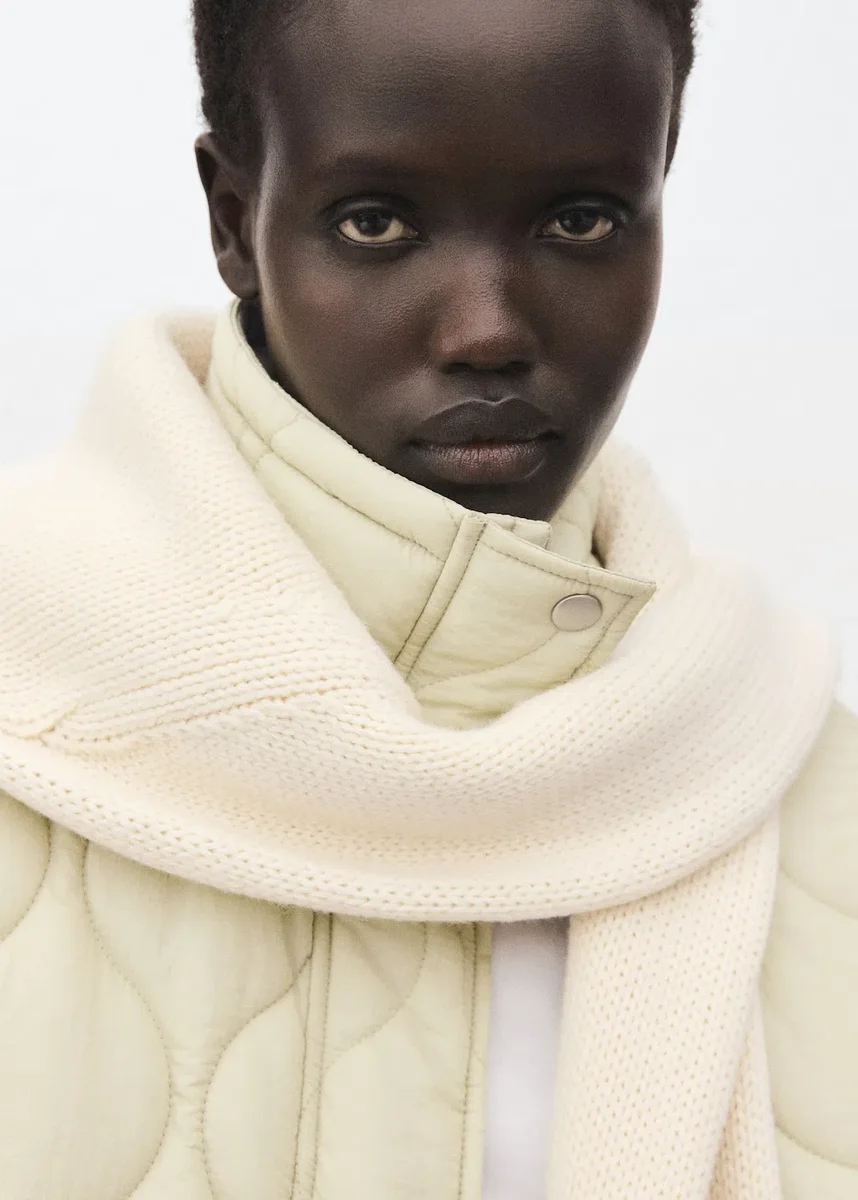 Tato bunda s prošívaným a oversized designem má vysoký obepínající límec. Má dvě boční kapsy a přední zapínání na zip a knoflíky. Pro větší pohodlí je vycpaná.