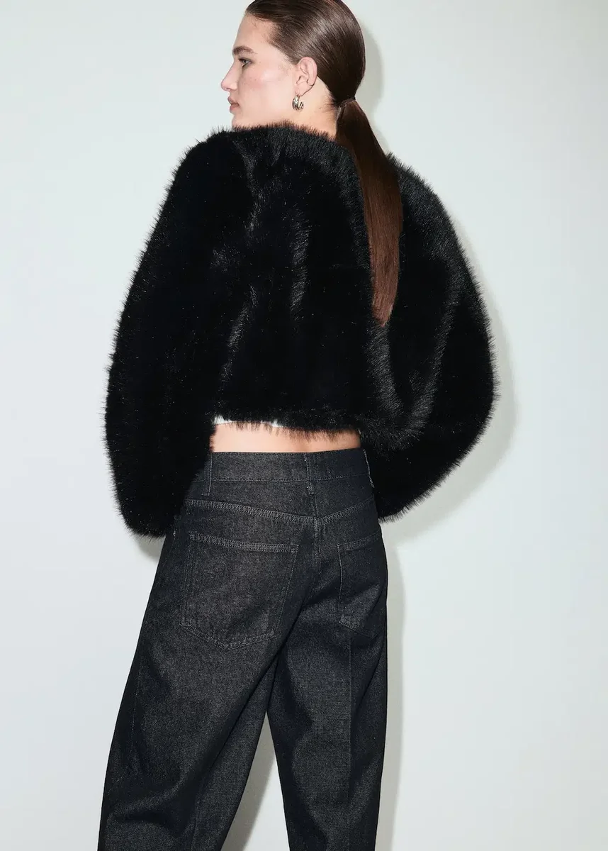 Kožešinový efekt. Krátký střih. Rovný střih. Kulatý výstřih. Dlouhé rukávy. Zapínání na knoflíky vpředu. Vnitřní podšívka. Tento oděv je součástí naší kolekce pro večírky a společenské události, která byla navržena tak, aby podtrhla váš vzhled při zvláštních příležitostech.
