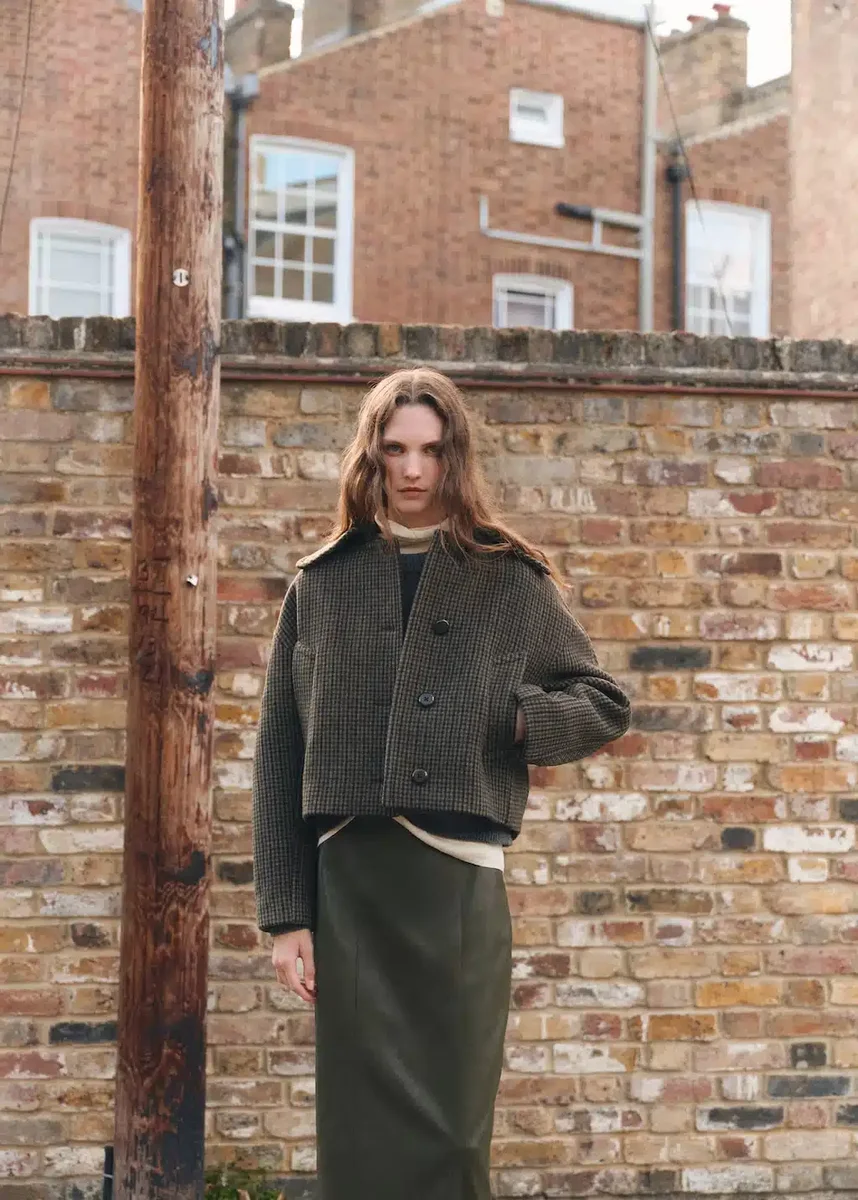 Směsová vlna. Kostkovaný vzor. Oversized střih. Košilový límec. Dlouhé rukávy. Dvě boční kapsy. Zapínání na knoflíky vpředu. Vnitřní podšívka. Black Friday