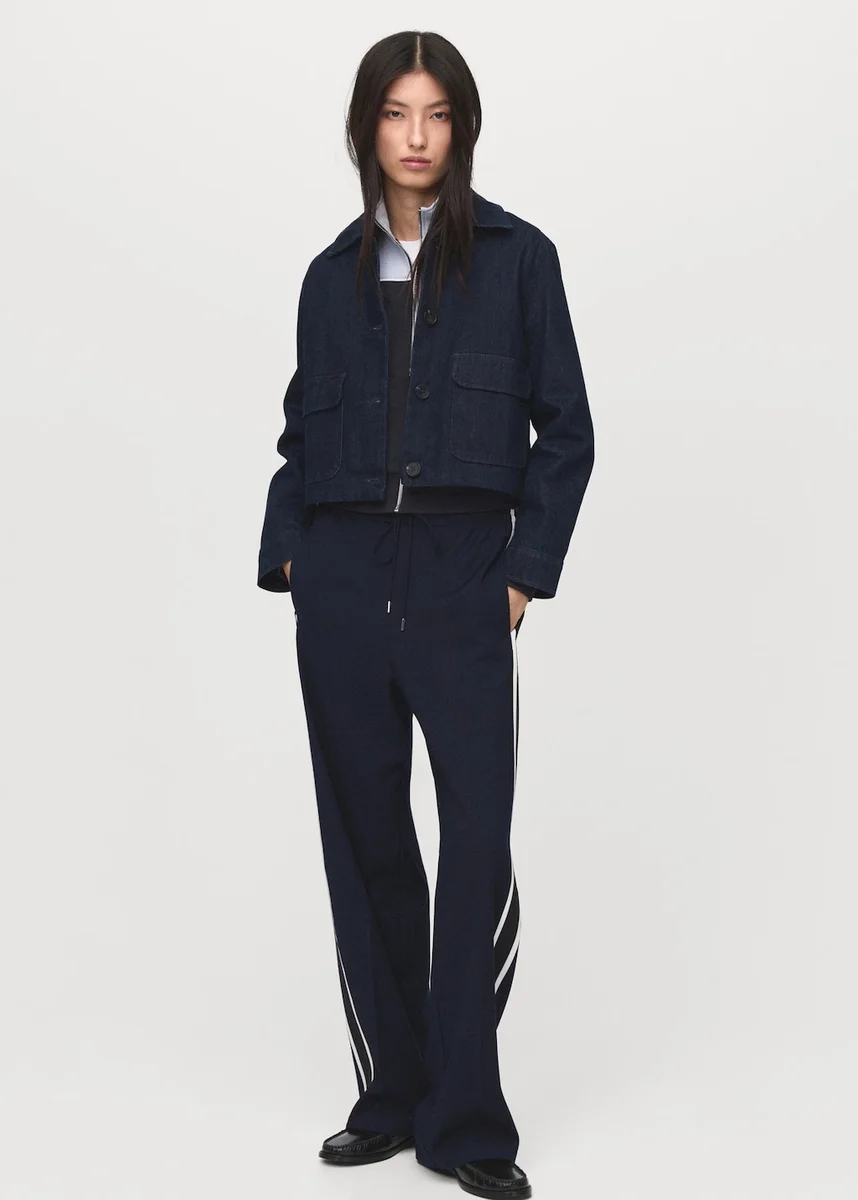Dlouhý střih. Rovný střih. Kontrastní pruhy. Středně vysoký pas. Elastický pas. Nastavitelná stahovací šňůrka. Bez zapínání. K dispozici v nadměrných velikostech