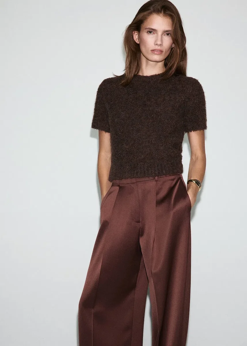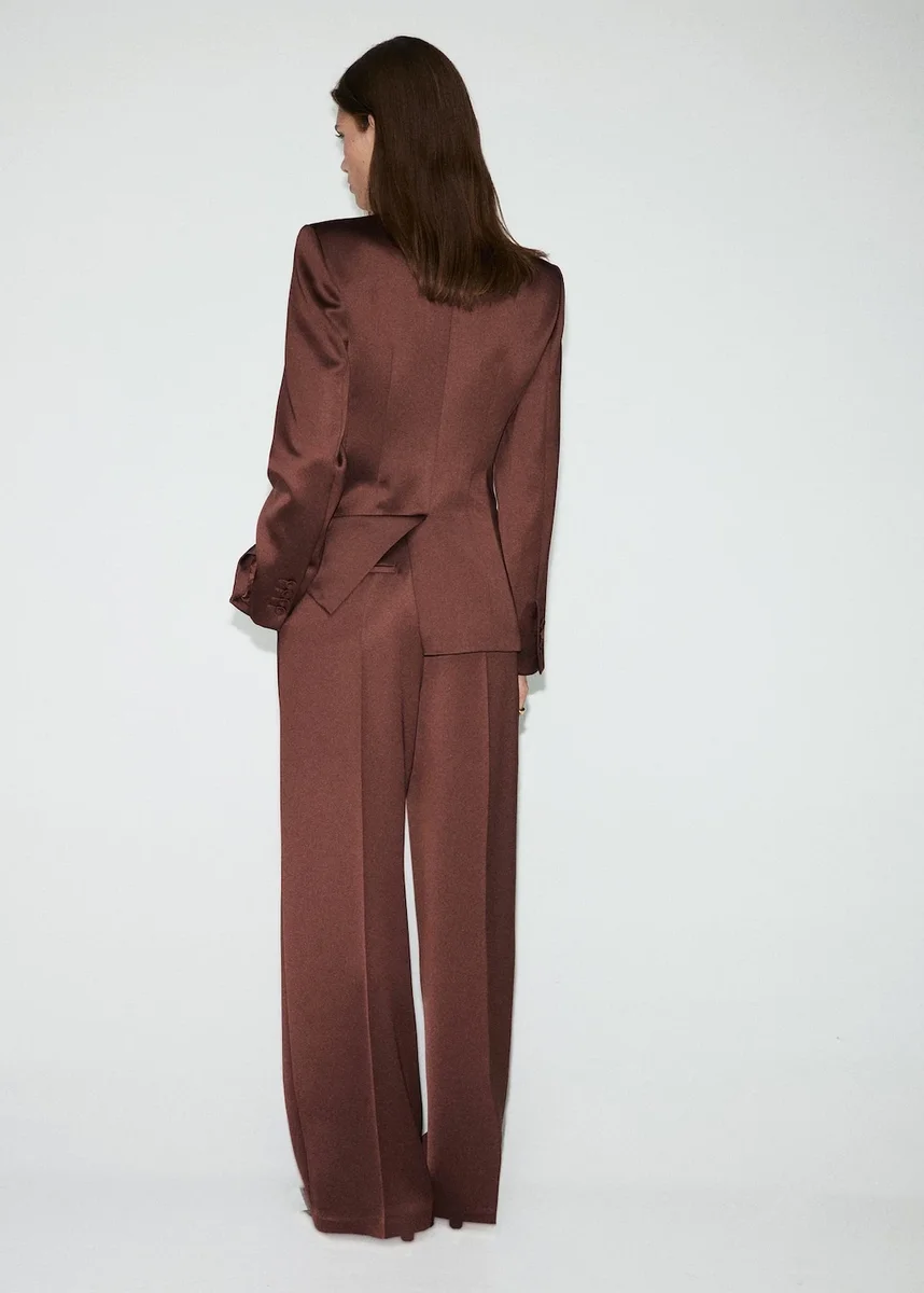 Saténová vazba. Dlouhý střih. Rovný střih. Středně vysoký pas. Poutka na opasek. Dvě boční kapsy. Dvě zadní kapsy s lemováním. Přední záhyb. Skryté zapínání na knoflík, háček a zip. Total look. Černá barva je exkluzivně k dispozici online. Tento oděv je součástí naší kolekce pro večírky a společenské události, která byla navržena tak, aby podtrhla váš vzhled při zvláštních příležitostech. 17 % polyester