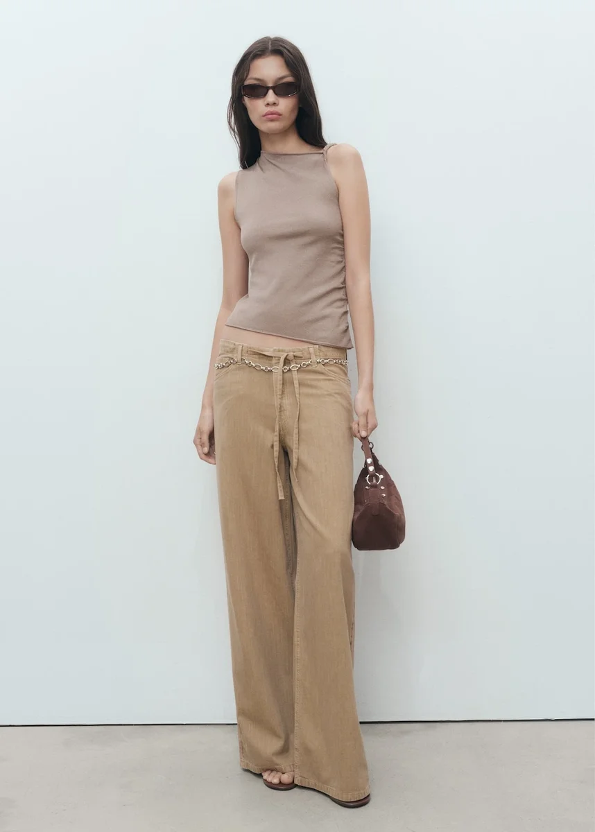 Džínové kalhoty se širokými nohavicemi a páskem
