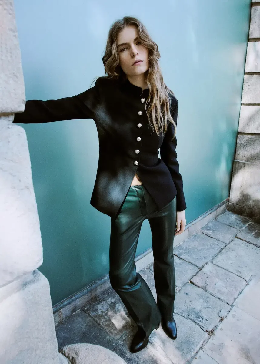Kožený efekt. Dlouhý střih. Přiléhavý střih. Rozšířený střih. Nízký pas. Zapínání na háček a zip. Zelená barva je exkluzivně k dispozici online.