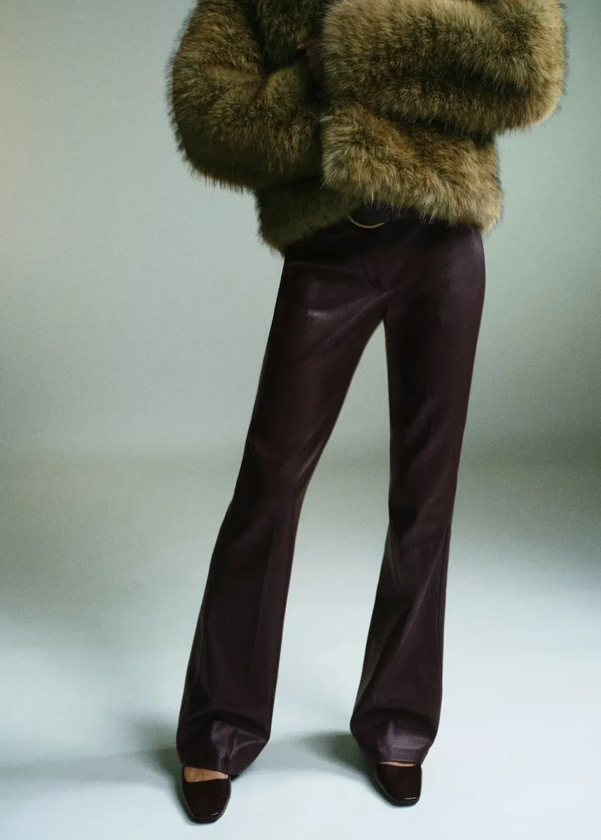 Kožený efekt. Dlouhý střih. Přiléhavý střih. Rozšířený střih. Nízký pas. Zapínání na háček a zip. Zelená barva je exkluzivně k dispozici online.