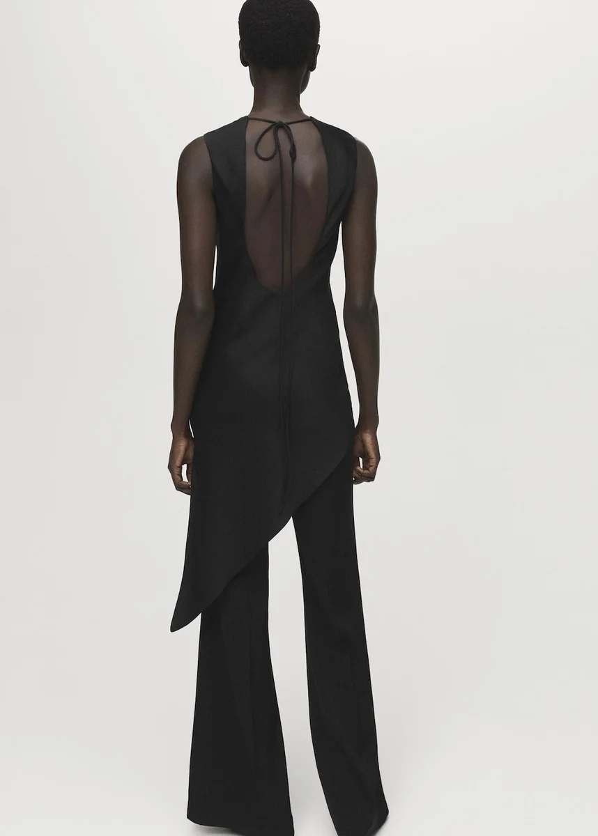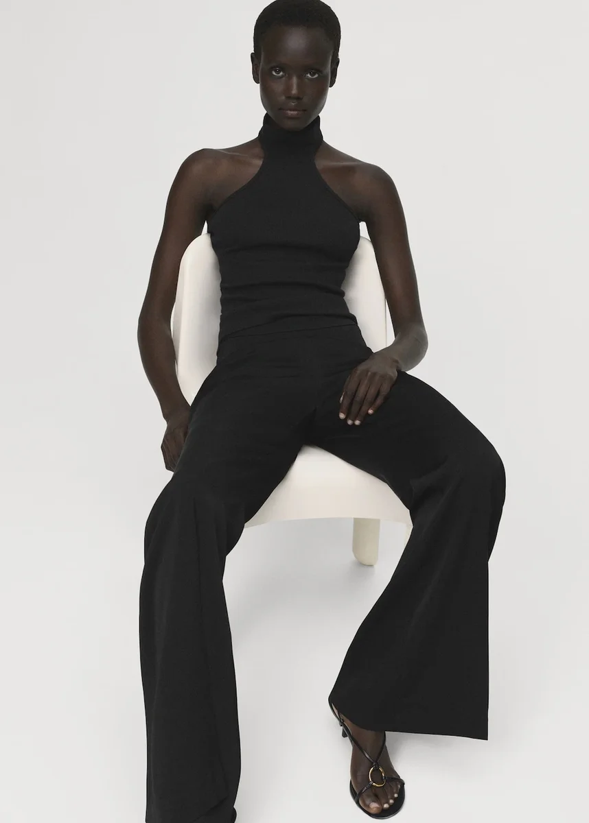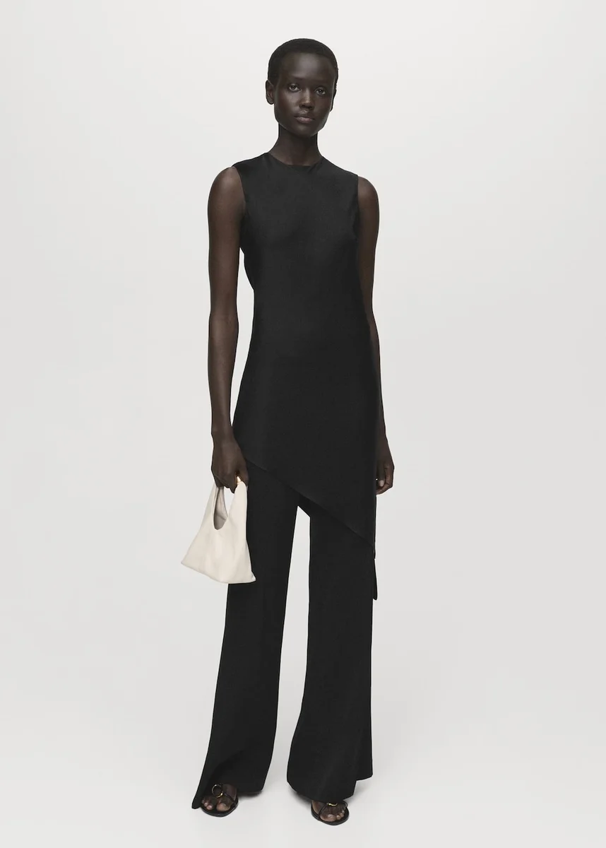 Dlouhý střih. Rozšířený střih. Vysoký pas. Boční zapínání na zip. Vnitřní podšívka. Total look. Tento oděv je součástí naší kolekce pro speciální příležitosti, která vám pomůže být dokonalým hostem na jakékoli párty, svatbě nebo slavnostní události. Černý a tmavě modrý model jsou exkluzivně k dostání online.