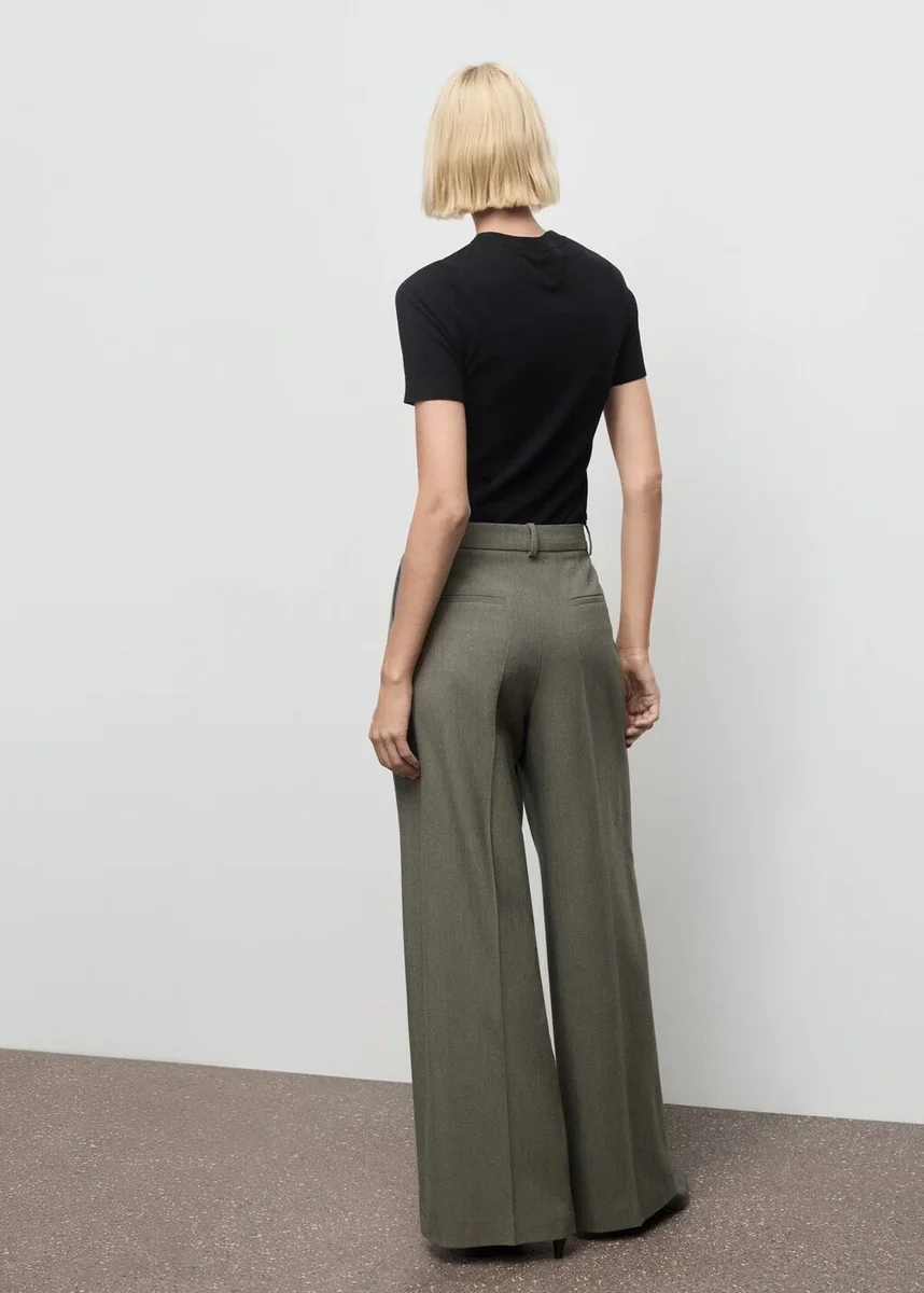 Dlouhý střih. Rovný střih. Střední výška pasu. Poutka na opasek. Detail švů. Dvě boční kapsy. Dvě zadní kapsy s lemováním. Skryté zapínání na knoflík, háček a zip. Vnitřní podšívka. Celkový vzhled. K dispozici v nadměrných velikostech