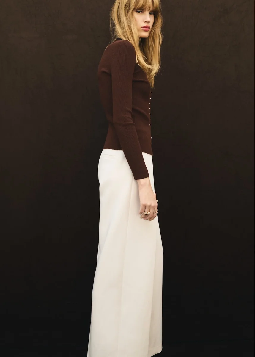Dlouhý střih. Rovný střih. Plisované detaily. Dvě boční kapsy. Zapínání na zip.