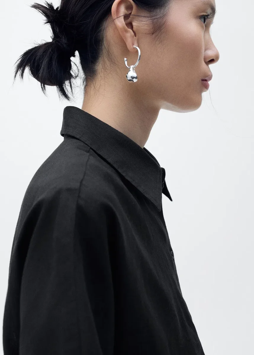 Tento oděv je vyroben ze směsi bavlny a lnu a má rovný střih s košilovým límcem a krátkými rukávy. Zapínání na knoflíky vpředu zvyšuje funkčnost. K dispozici v nadměrných velikostech
