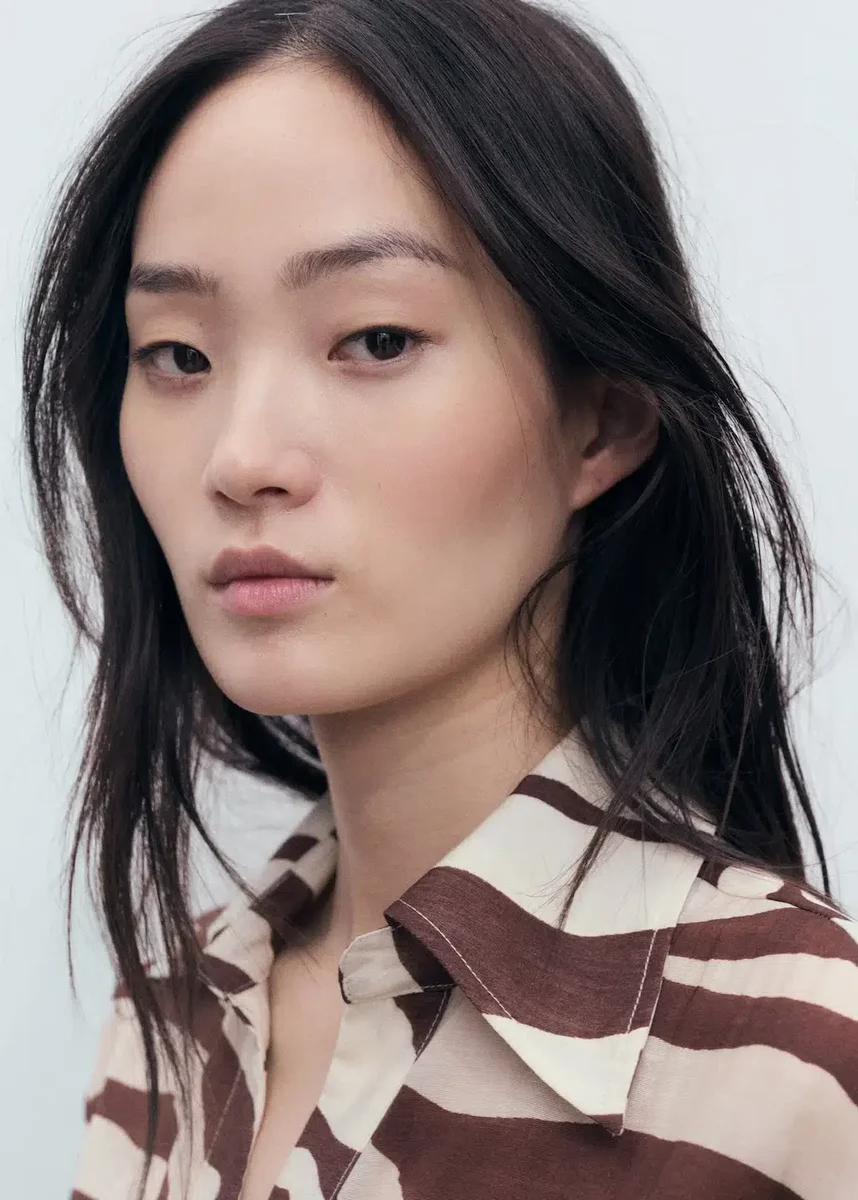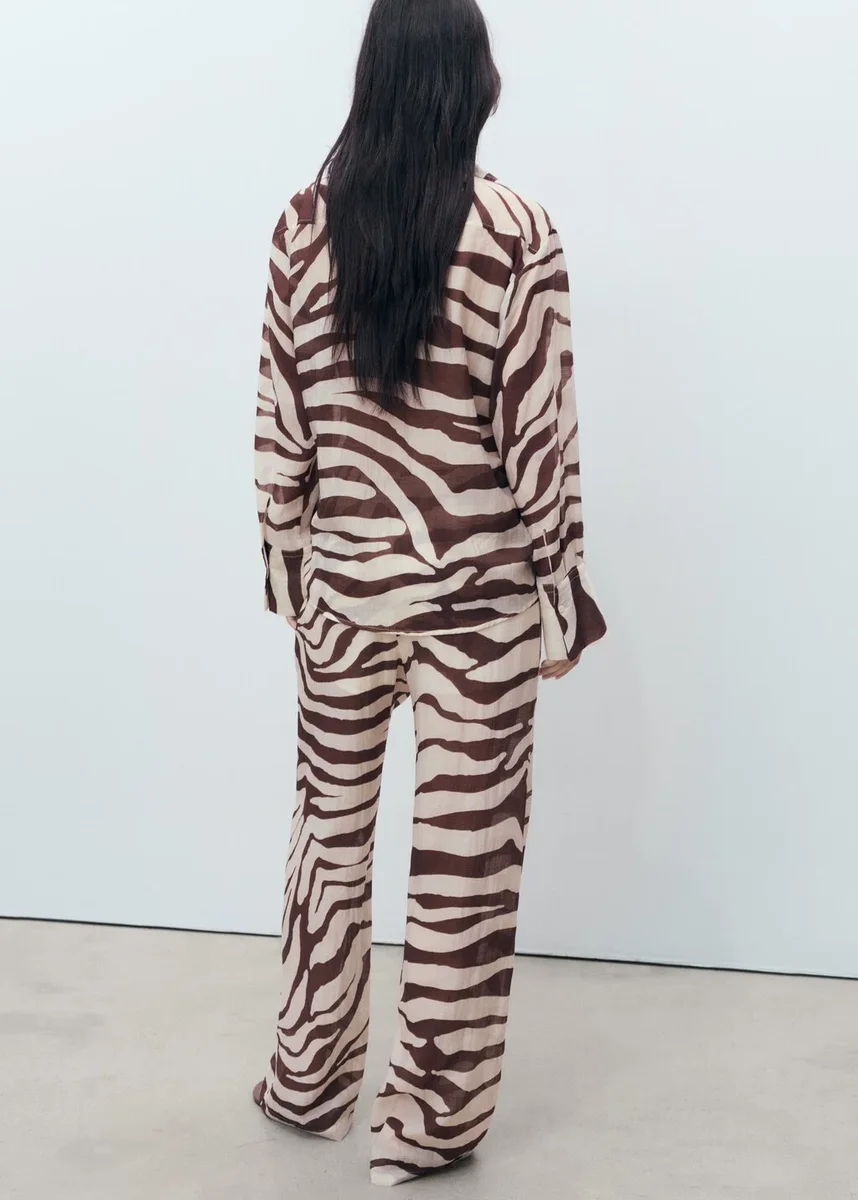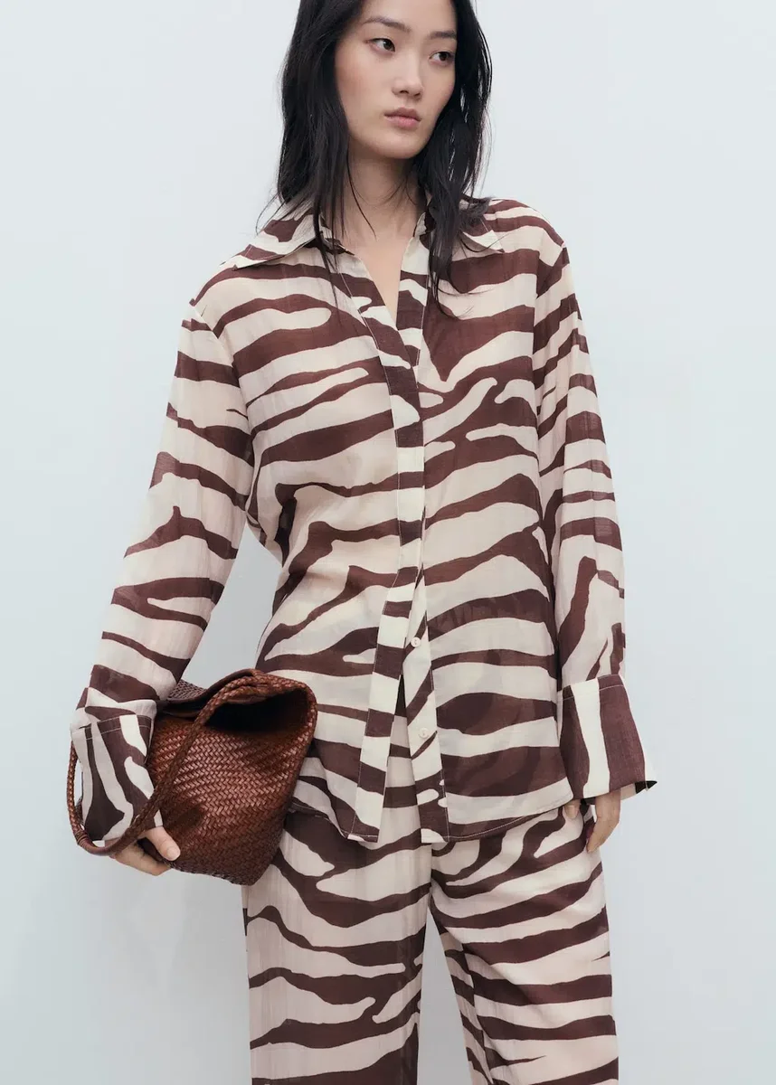 Plynulá látka. Rovný střih. Košilový límec. Dlouhý rukáv. Zebrový potisk. Skryté zapínání na knoflíky. Celkový vzhled
