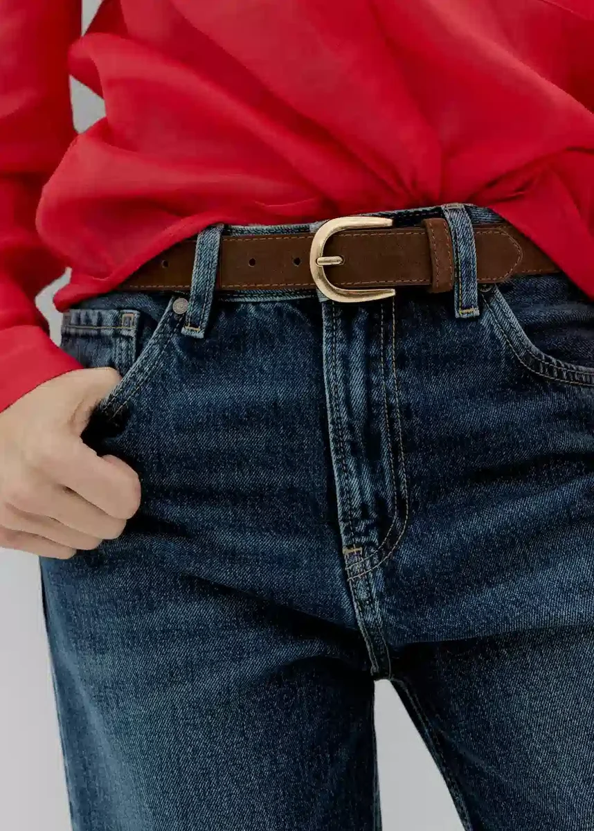 100% hovězí kůže. Semiš. Oválná přezka. Zapínání na přezku. Nastavitelná spona