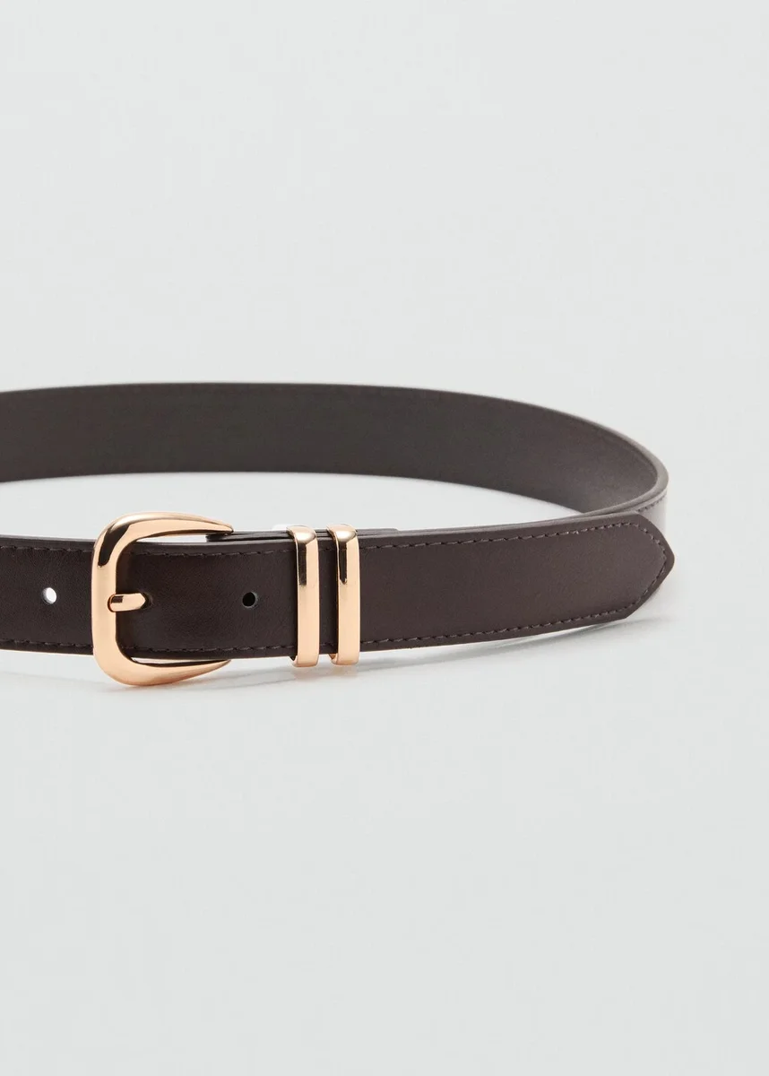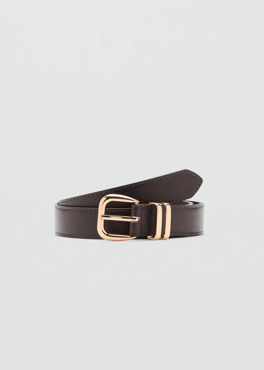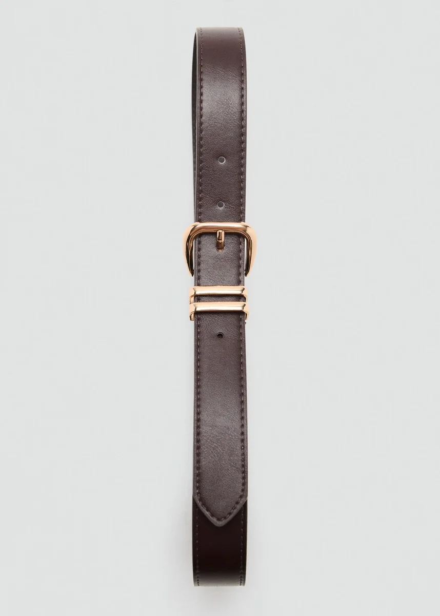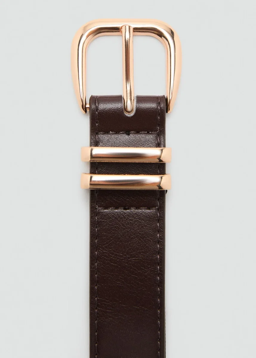 Kožený efekt. Úzký střih. Čtvercová kovová spona.