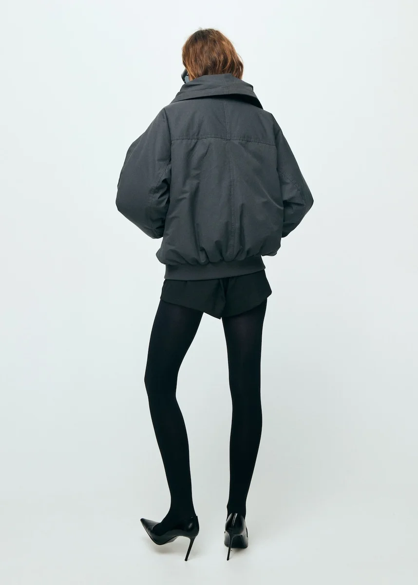 Bavlněná směsová tkanina. Bomberový styl. Prošívaný design. Oversized střih. Košilový límec. Límec do V. Dlouhé rukávy s elastickými manžetami. Dvě boční kapsy. Dvoucestný zip. S výplní. Vnitřní podšívka. Exkluzivně online.