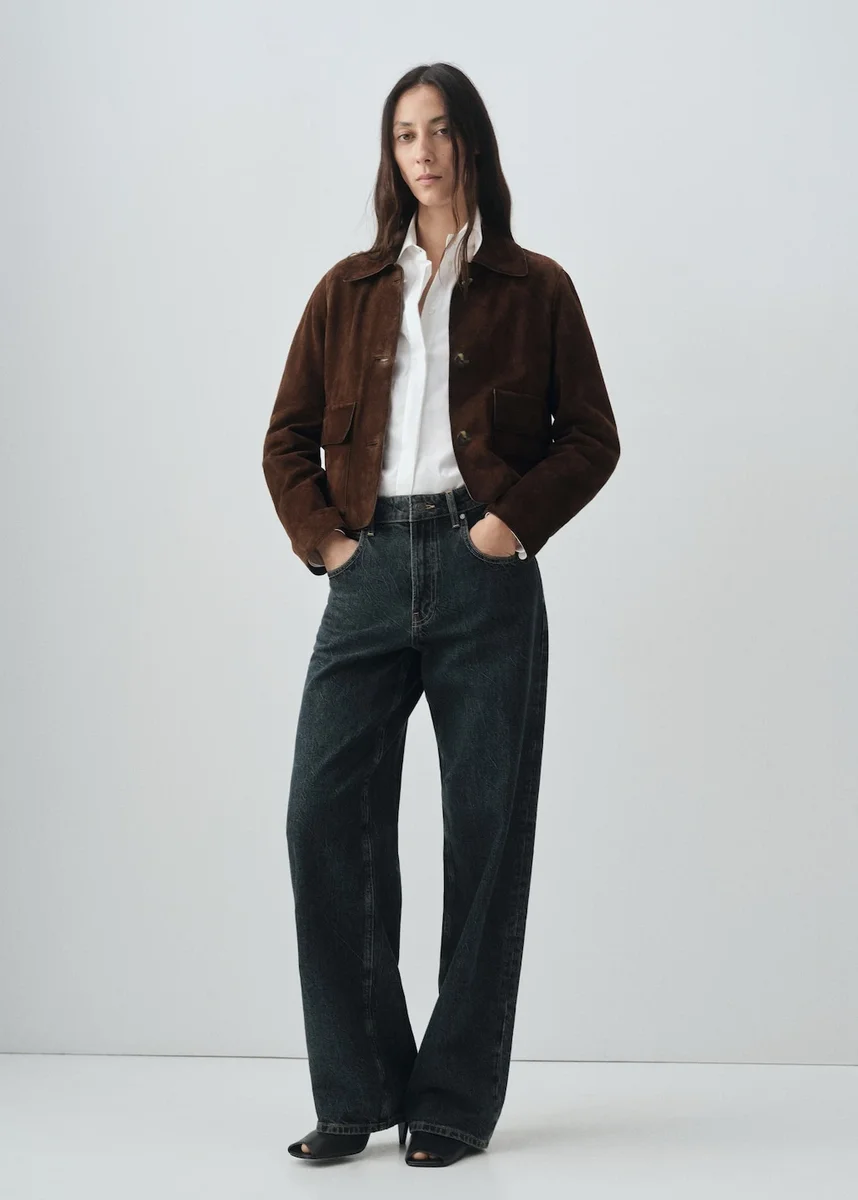100 % kozí kůže. Semiš. Krátký střih. Rovný střih. Košilový límec. Dlouhé rukávy. Dvě našité kapsy a přední kapsy s klopou. Zapínání na knoflíky vpředu. Vnitřní podšívka. Kolekce Selection. Výběr rafinovaných oděvů, vyrobených z kvalitních materiálů, které vytvoří ženský a moderní šatník.