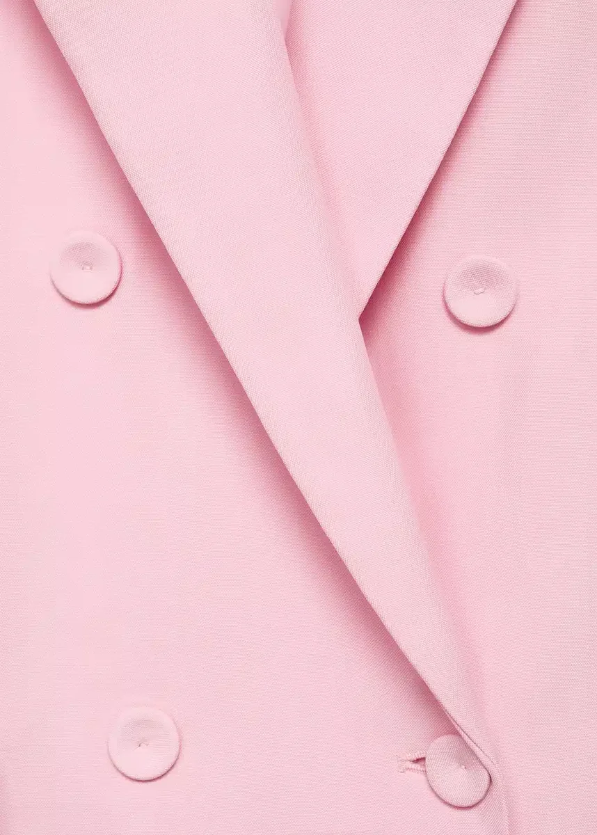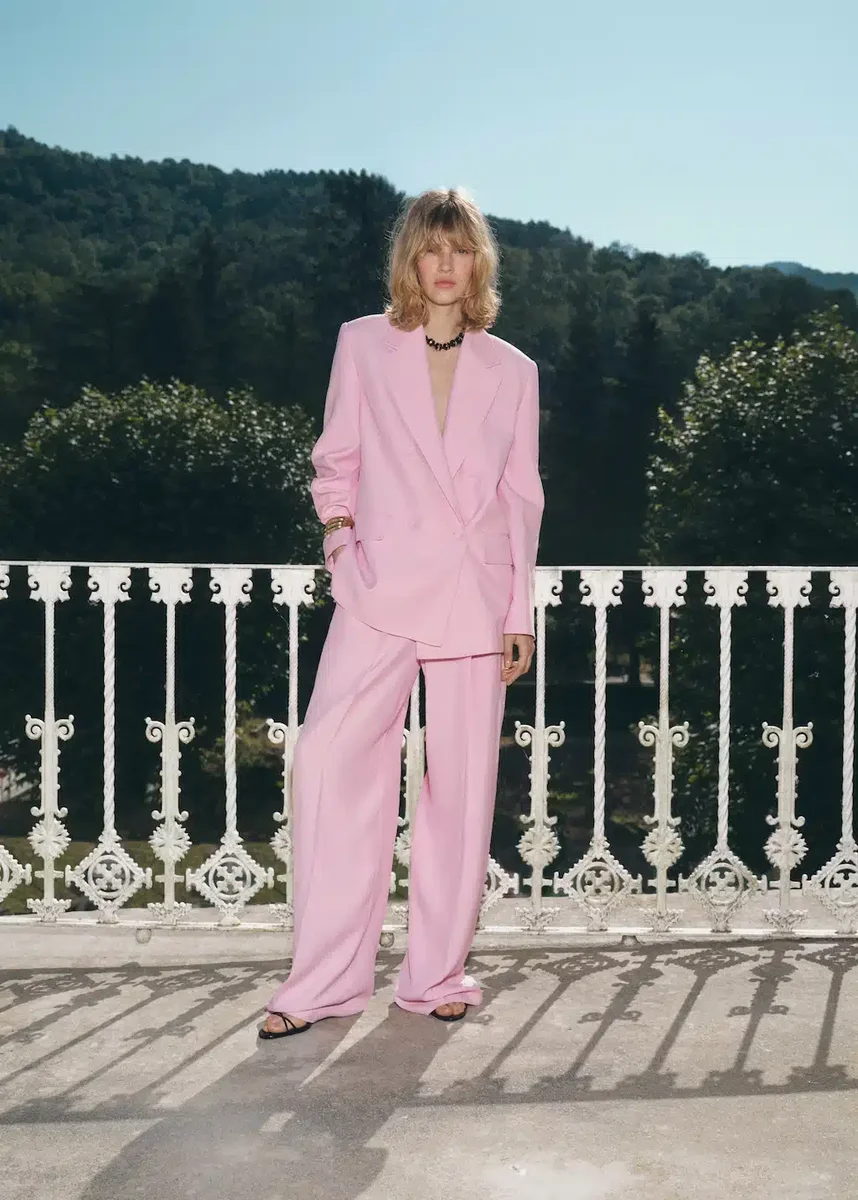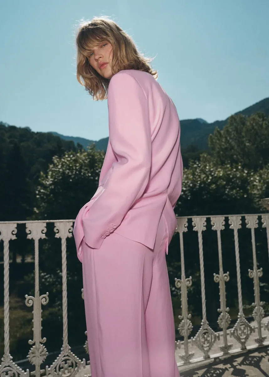 Rovný střih. Zavinovací střih. Límec s klopami a výstřihem do V. Klopy s výřezem. Dlouhé rukávy s manžetami na knoflíky. Náprsní kapsa s lemováním. Dvě kapsy s klopami na přední straně. Zapínání na dva knoflíky. Vnitřní podšívka. Total look. Tento oděv je součástí naší kolekce pro slavnostní příležitosti, která je navržena tak, abyste byla dokonalým hostem na jakékoli oslavě, svatbě nebo slavnostním ceremoniálu.