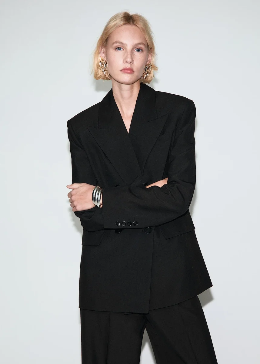 Kostýmový střih. Směsová vlna. Oversized střih. Límec s klopami a výstřihem do V. Klopy s výřezem. Dlouhé rukávy s manžetami na knoflíky. Jedna kapsová kapsa na hrudi. Dvě boční kapsy s klopami. Zapínání na dva knoflíky. Vnitřní podšívka. Total look. Tento oděv je součástí naší kolekce pro večírky a společenské události, která je navržena tak, aby podtrhla váš vzhled při zvláštních příležitostech.