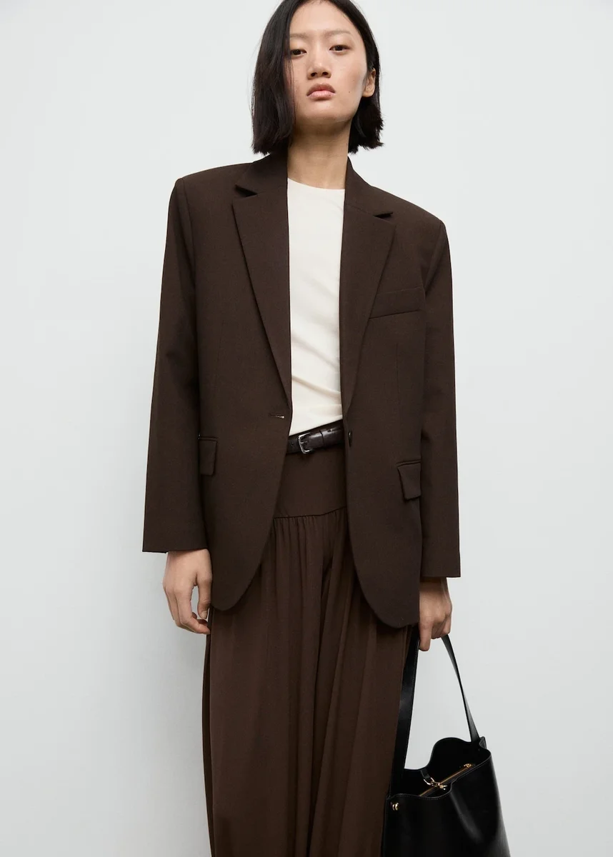 Rovný střih. Límec s klopami a výstřihem do V. Klopy s výřezem. Dlouhé rukávy s manžetami na knoflíky. Náprsní kapsa. Dvě kapsy s klopami na přední straně. Zapínání na knoflíky vpředu. Vnitřní podšívka. Celkový vzhled. K dispozici v nadměrných velikostech. Složení: 67 % polyester, 28 % viskóza, 5 % elastan Podšívka: 53 % polyester, 47 % viskóza Podšívka rukávů: 100 % polyester