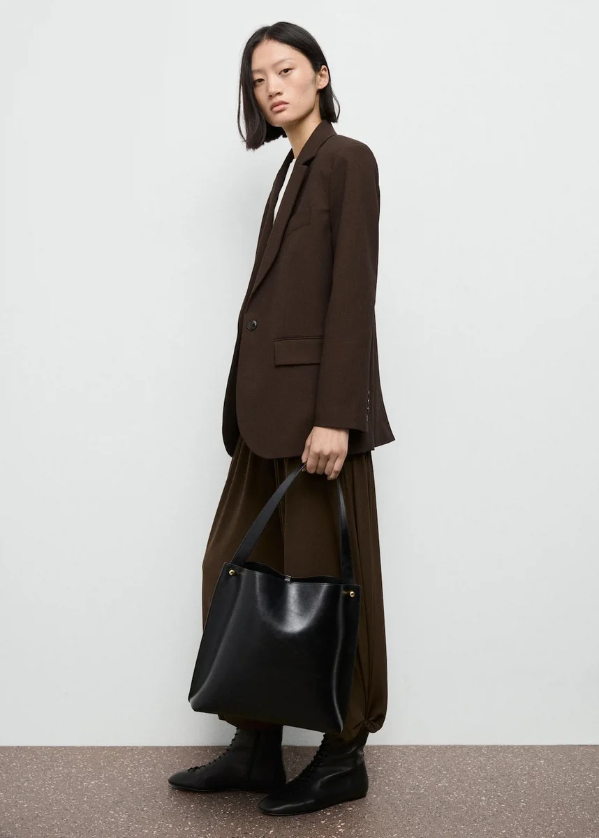 Rovný střih. Límec s klopami ve tvaru V. Klopy s výřezem. Dlouhé rukávy s manžetami na knoflíky. Náprsní kapsa s lemováním. Dvě kapsy s klopami na přední straně. Zapínání na knoflíky vpředu. Vnitřní podšívka. Total look. K dispozici v nadměrných velikostech