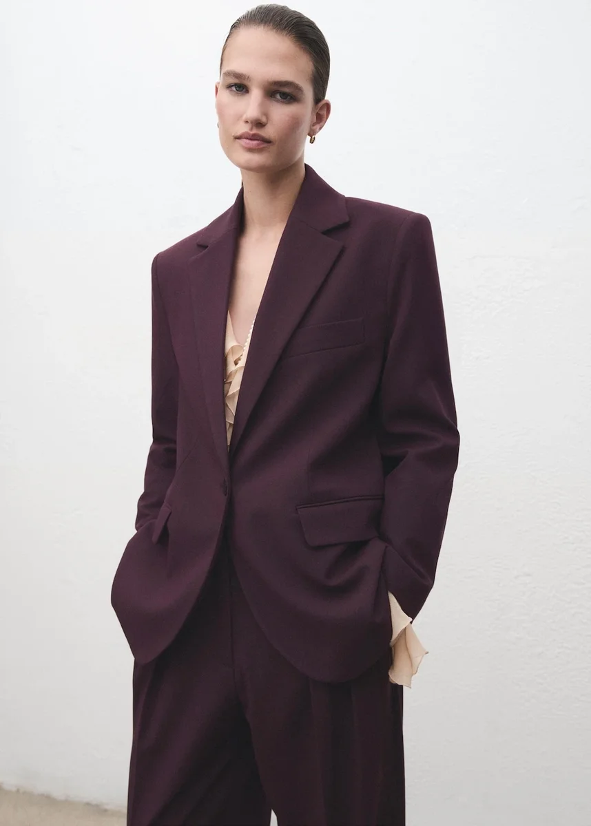 Rovný střih. Límec s klopami a výstřihem do V. Klopy s výřezem. Dlouhé rukávy s manžetami na knoflíky. Náprsní kapsa. Dvě kapsy s klopami na přední straně. Zapínání na knoflíky vpředu. Vnitřní podšívka. Celkový vzhled. K dispozici v nadměrných velikostech. Složení: 67 % polyester, 28 % viskóza, 5 % elastan Podšívka: 53 % polyester, 47 % viskóza Podšívka rukávů: 100 % polyester