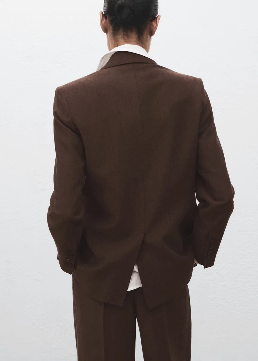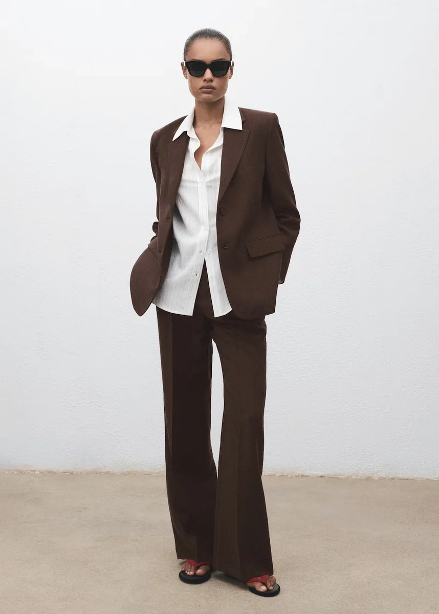 Lyocellová tkanina. Rovný střih. Límec s klopami a výstřihem do V. Klopové límce. Dlouhé rukávy s manžetami na knoflíky. Dvě kapsy s klopami na přední straně. Zapínání na dva knoflíky vpředu. Podšívka ze 100% bavlny. Kompletní look. Exkluzivně online.