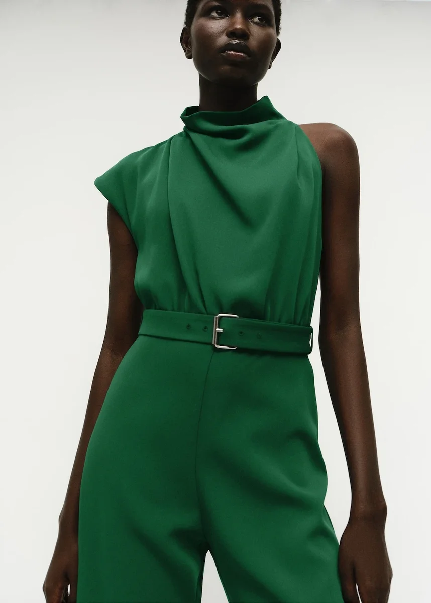Dlouhý střih. Rovný střih. Drapovaný výstřih. Asymetrické rukávy. Poutka na pásek. Zapínání na pásek. Zapínání na knoflíky u krku. Vnitřní podšívka. Tento oděv je součástí naší kolekce pro slavnostní příležitosti, která je navržena tak, abyste byli dokonalým hostem na jakékoli párty, svatbě nebo slavnostní události.