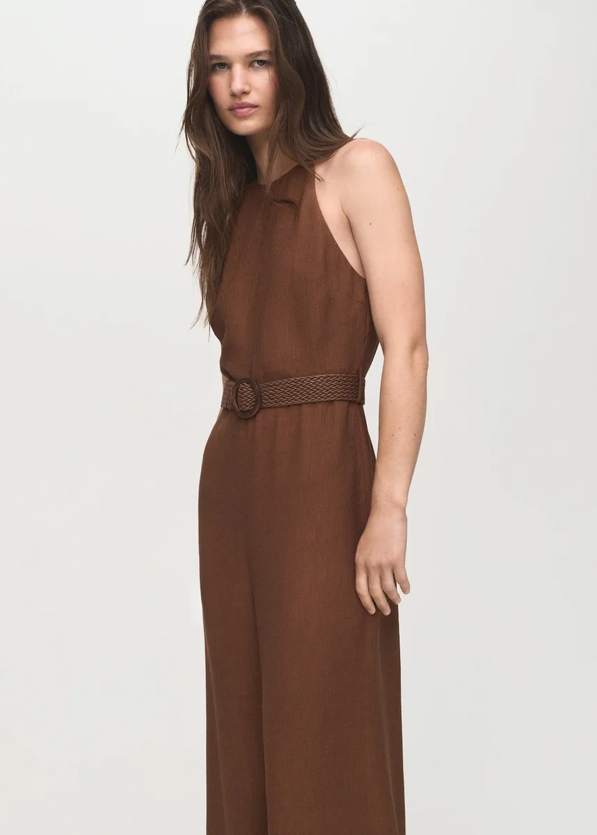 Plisovaná tkanina. Dlouhý střih. Rovný střih. Halter výstřih. Bez rukávů. Tenké ramínka. Nastavitelný pásek. Zapínání na zip vzadu. Podšívka 100 % bavlna. Exkluzivně online. Tento model je součástí naší kolekce ležérního oblečení, které vám stylově doprovodí ve vašem každodenním životě.