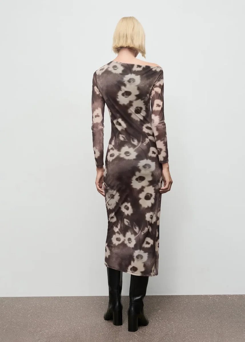 Středně dlouhý střih. Přiléhavý střih. Květinový potisk. Asymetrický výstřih. Dlouhé rukávy. Drapovaný detail v pase. Bez zapínání. Vnitřní podšívka. Tento oděv je součástí naší kolekce pro volný čas, která je navržena tak, aby vás stylově doprovázela ve vašem každodenním životě.