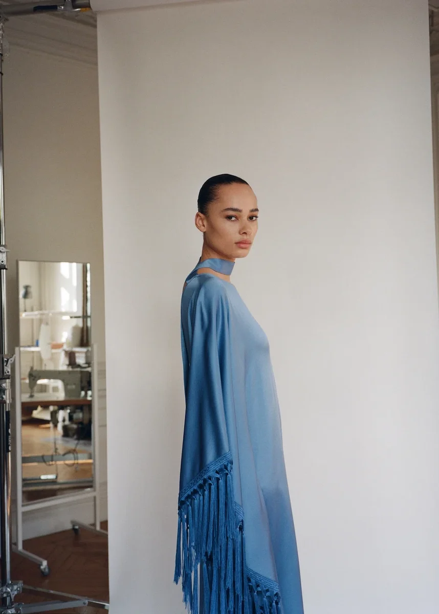 Tyto saténové šaty jsou skutečným módním prohlášením, které kombinuje asymetrický střih s vícepolohovými rozšiřujícími se rukávy, které nabízejí univerzálnost a volnost pohybu. Mašle u krku dodává šatům nádech elegance, kterou si můžete přizpůsobit, zatímco třásně na lemu jim propůjčují sofistikovanou dynamiku. Ideální pro ty, které chtějí na každé speciální příležitosti vyniknout odvážným a elegantním vzhledem. Saténová tkanina. Střih midi. Límec s více polohami. Asymetrický výstřih. Dlouhé rukávy. Mašle u krku. Boční zapínání na zip. Třásně na lemu. Vnitřní podšívka. Kolekce pro večírky a slavnostní příležitosti. Zboží z kolekce CAPSULE lze vyměnit nebo vrátit do 14 dnů od data odeslání. Tento oděv je součástí naší kolekce pro slavnostní příležitosti, která je navržena tak, abyste byla dokonalou hostkou na každém večírku, svatbě nebo slavnostní příležitosti.