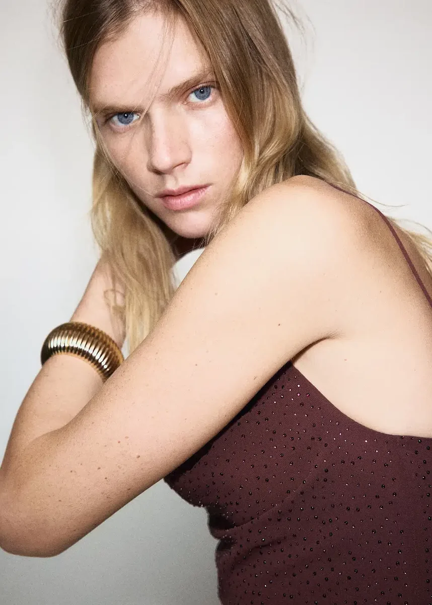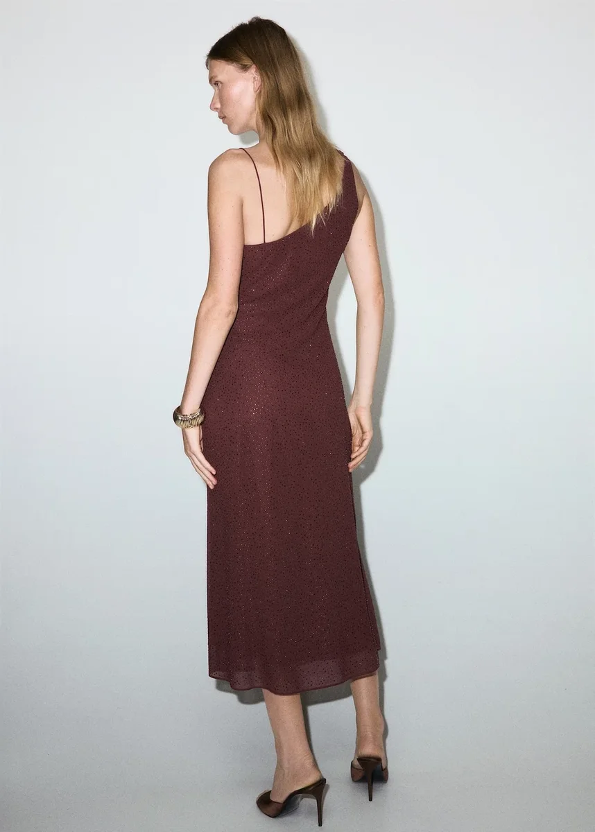 Dlouhý střih. Přiléhavý střih. Strassový design. Asymetrický výstřih. Bez rukávů. Asymetrické ramínka. Boční zapínání na zip. Vnitřní podšívka. Tento oděv je součástí naší kolekce pro večírky a společenské události, která byla navržena tak, aby podtrhla váš vzhled při zvláštních příležitostech.