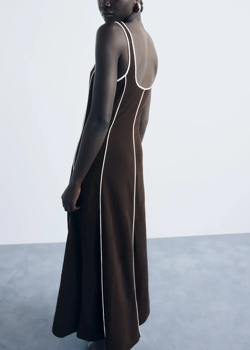 Bavlněná tkanina. Střih midi. Rovný střih. Hluboký výstřih. Bez rukávů. Široká ramínka. Pruhovaný reliéf. Bez zapínání. Tento oděv je součástí naší kolekce ležérního oblečení, které vás stylově doprovodí ve vašem každodenním životě.