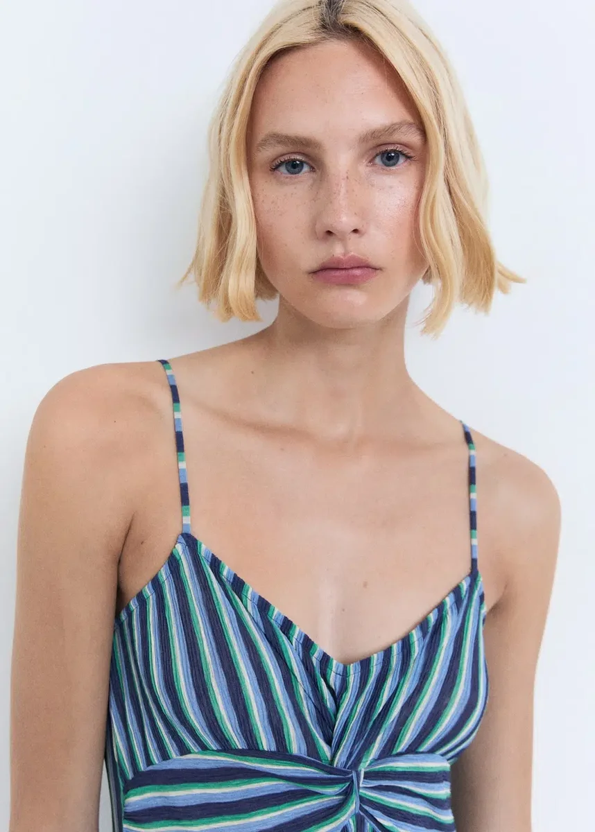 Střih midi. Rovný střih. Výstřih do V. Bez rukávů. Tenké nastavitelné ramínka. Na přední straně řasení. Bez zapínání. Tento model je součástí naší kolekce pro volný čas, která vám stylově doprovodí každý den.