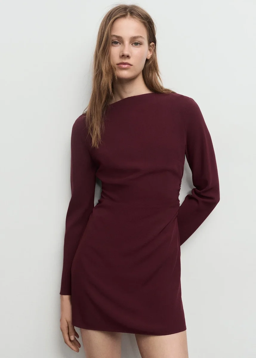 Krátký střih. Přiléhavý střih. Lodičkový výstřih. Dlouhé rukávy. Boční záhyby. Bez zapínání. K dispozici v nadměrných velikostech. Black Friday.
