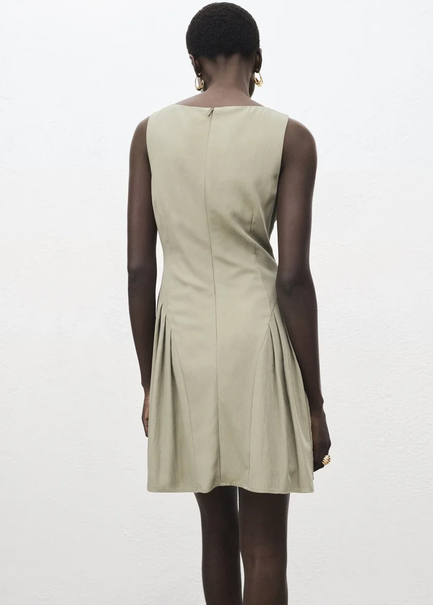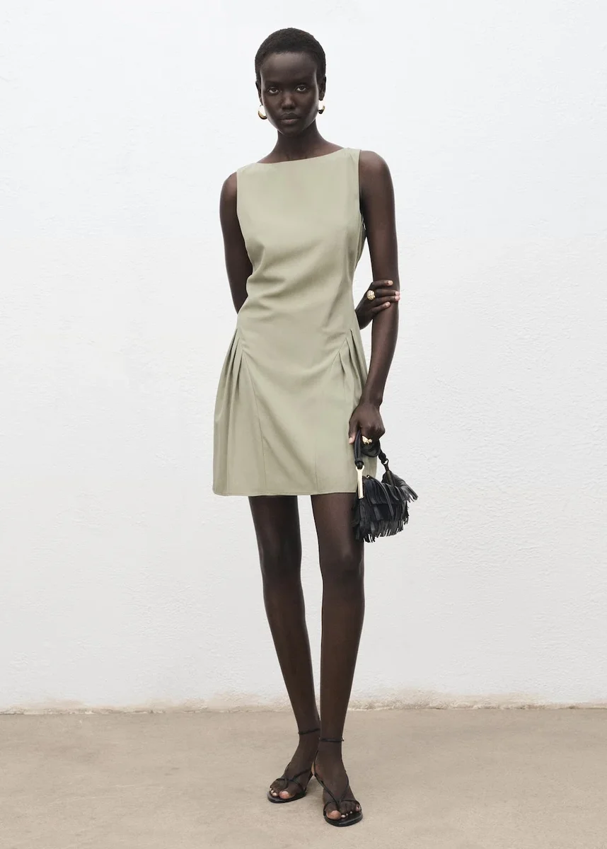Krátký střih. Rovný střih. Lodní výstřih. Bez rukávů. Boční plisování. Zapínání na zadní straně na zip. Vnitřní podšívka. Tento oděv je součástí naší kolekce pro volný čas, která je navržena tak, aby vás stylově doprovázela ve vašem každodenním životě.